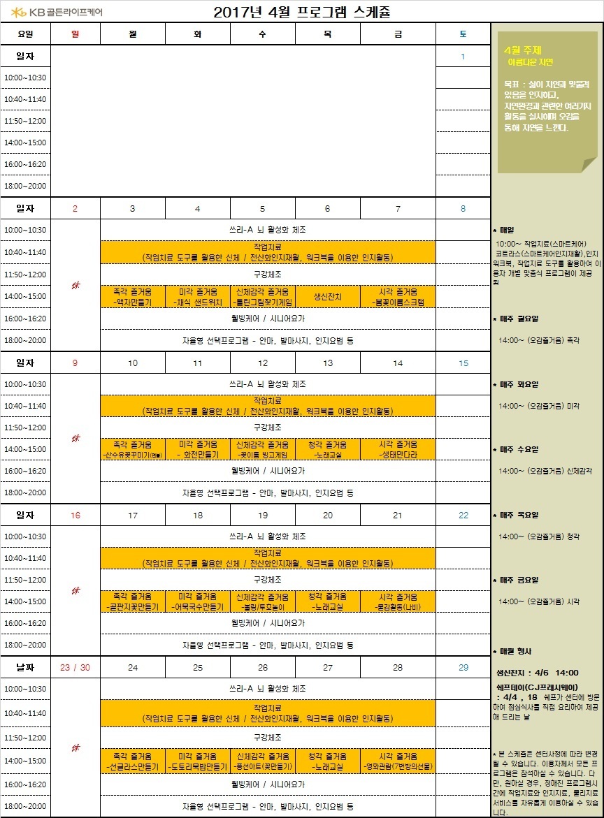 강동케어센터 [프로그램 안내] 2017.4월 강동케어센터 프로그램 페이지 정보 작성자 KB 골든라이프 댓글 0건 조회 3,003회 작성일 17-04-03 13:35 목록 본문 목록 이전글[기사] KB골든라이프케어, 강남대 학생들과 '사랑 나눔' 동행 17.04.11 다음글KB골든라이프케어 강동케어센터 2017년 1분기 결산서 17.04.01