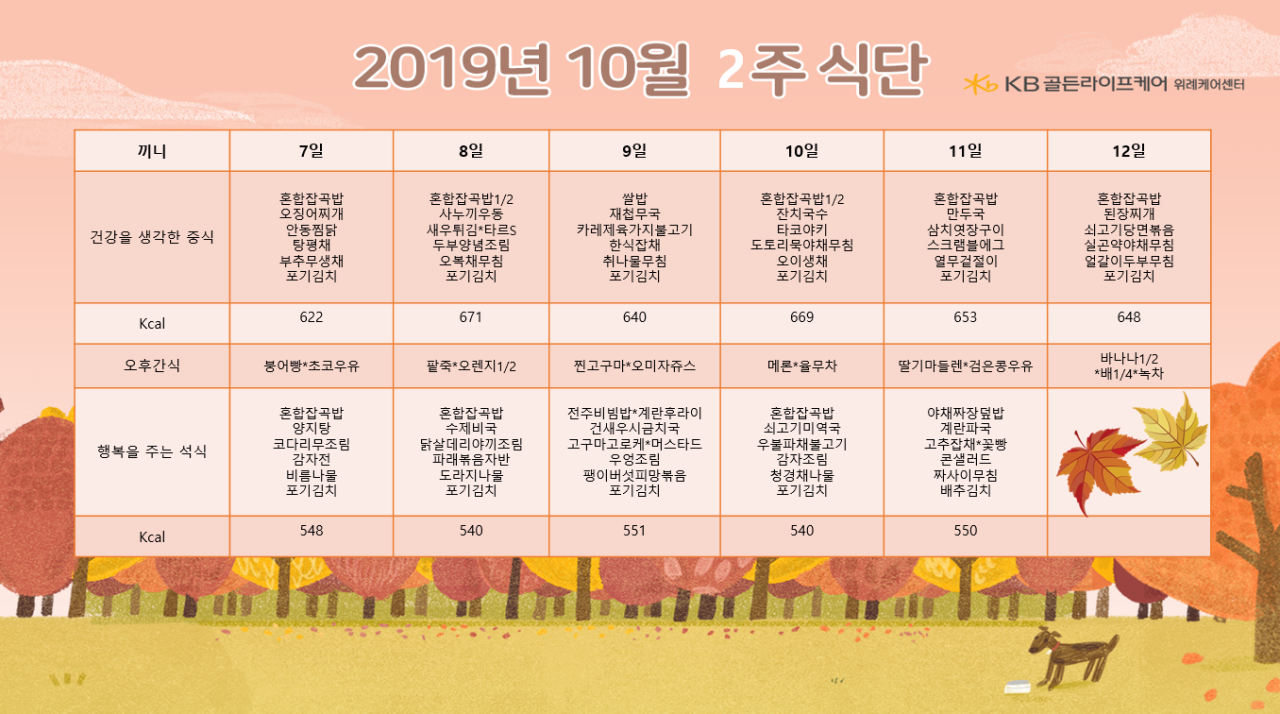 위례빌리지 [식단안내] 위례 데이케어 10월 2주차 식단표 페이지 정보 작성자 KB 골든라이프 댓글 0건 조회 2,645회 작성일 19-10-04 11:13 목록 본문 목록 이전글[식단안내] 위례 빌리지 10월 3주차 식단표 19.10.11 다음글[식단안내] 위례 빌리지 10월 2주차 식단표 19.10.04