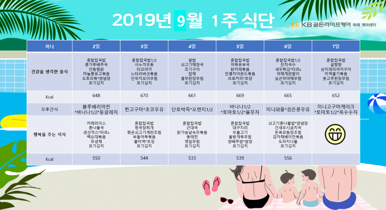위례케어센터 [식단안내] 위례 케어센터 9월 1주차 식단표 페이지 정보 작성자 KB 골든라이프 댓글 0건 조회 2,395회 작성일 19-08-30 16:15 목록 본문 목록 이전글[프로그램 안내] 2019년 위례빌리지 9월 프로그램 일정표 19.09.03 다음글[식단안내] 위례 빌리지 9월 1주차 식단표 19.08.30