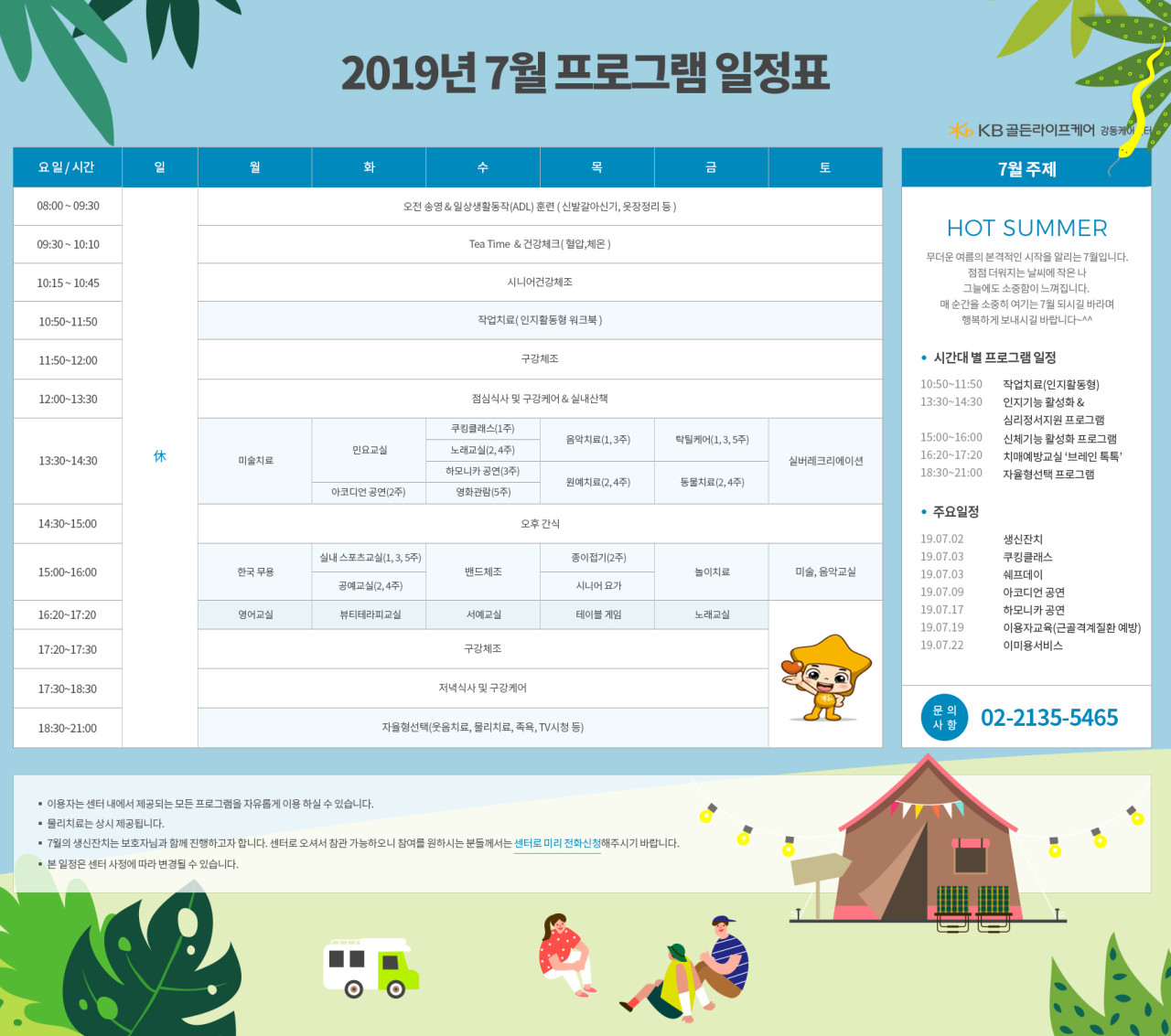 강동케어센터 [프로그램 안내] 2019년 강동케어센터 7월 프로그램 스케줄 페이지 정보 작성자 KB 골든라이프 댓글 0건 조회 3,364회 작성일 19-06-28 11:12 목록 본문 목록 이전글[식단안내] 강동케어센터 2019년 7월 식단표 19.06.28 다음글[식단안내] 위례 빌리지 2019년 6월 2주차 식단표 19.06.14
