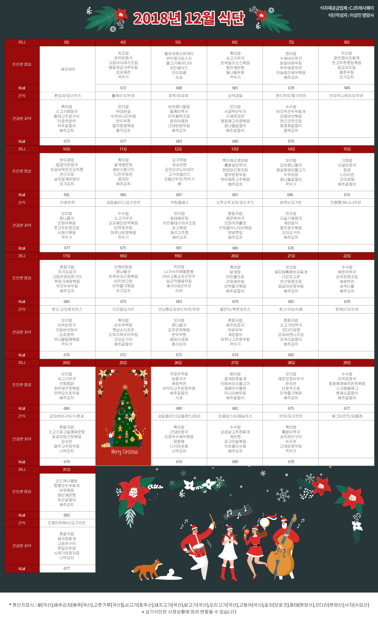 강동케어센터 [식단안내] 2018년 12월 식단표 페이지 정보 작성자 KB 골든라이프 댓글 0건 조회 3,472회 작성일 18-12-04 15:19 목록 본문 목록 이전글[프로그램 안내] 2018년 12월 프로그램 스케줄 18.12.04 다음글[공고] KB골든라이프케어 위례 요양시설 인테리어영역 도어공사 입찰공고 18.11.08