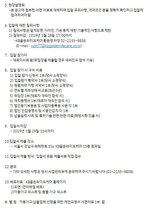 본사 『KB골든라이프빌리지 위례』 이동가구 납품 업체 선정을 위한 입찰 공고