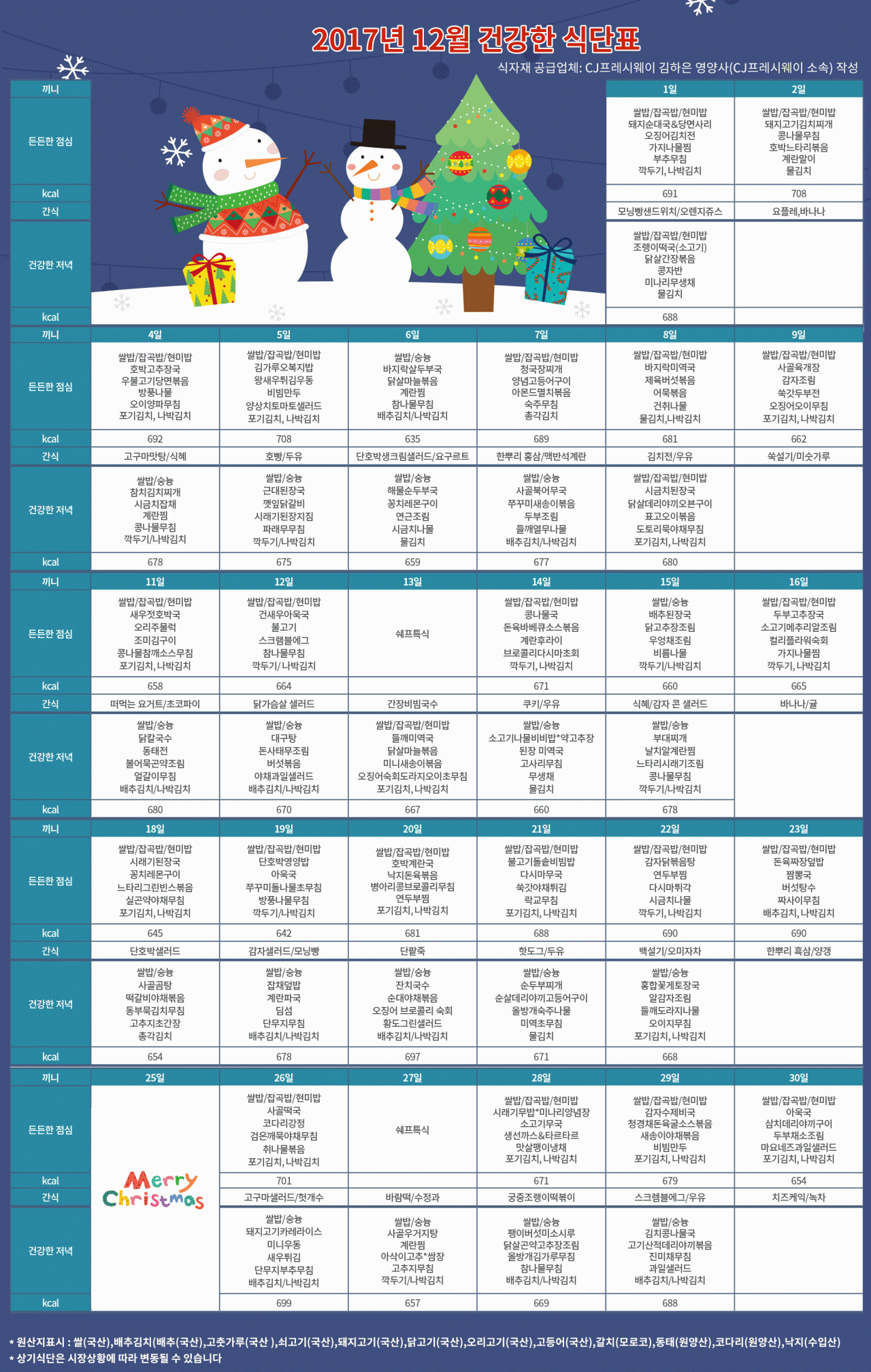 강동케어센터 [식단안내] 2017년 12월 따뜻한 식단표