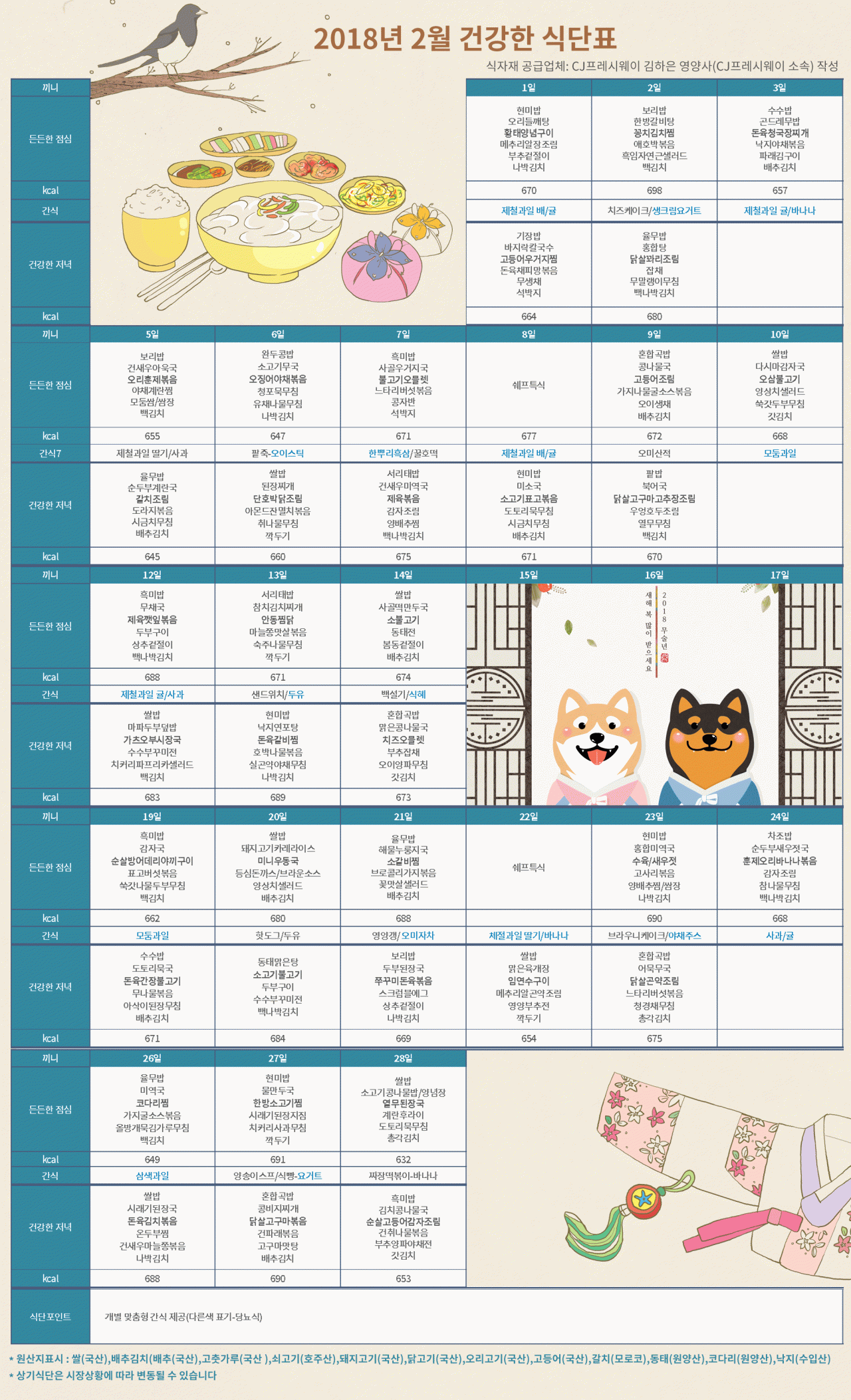 강동케어센터 [식단안내] 2018년 2월 깔끔한 식단
