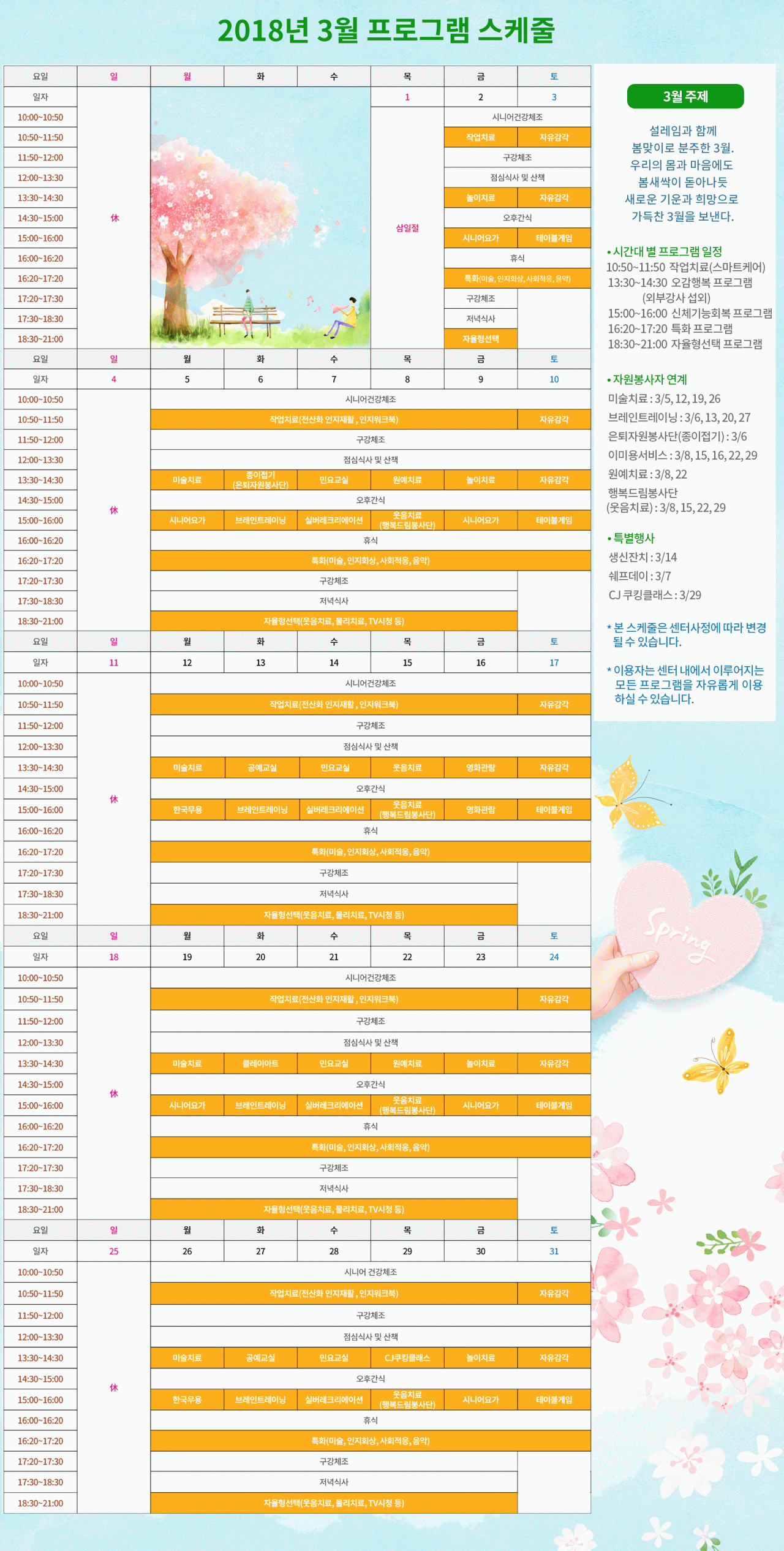 강동케어센터 [프로그램 안내] 2018년 3월 프로그램 스케줄