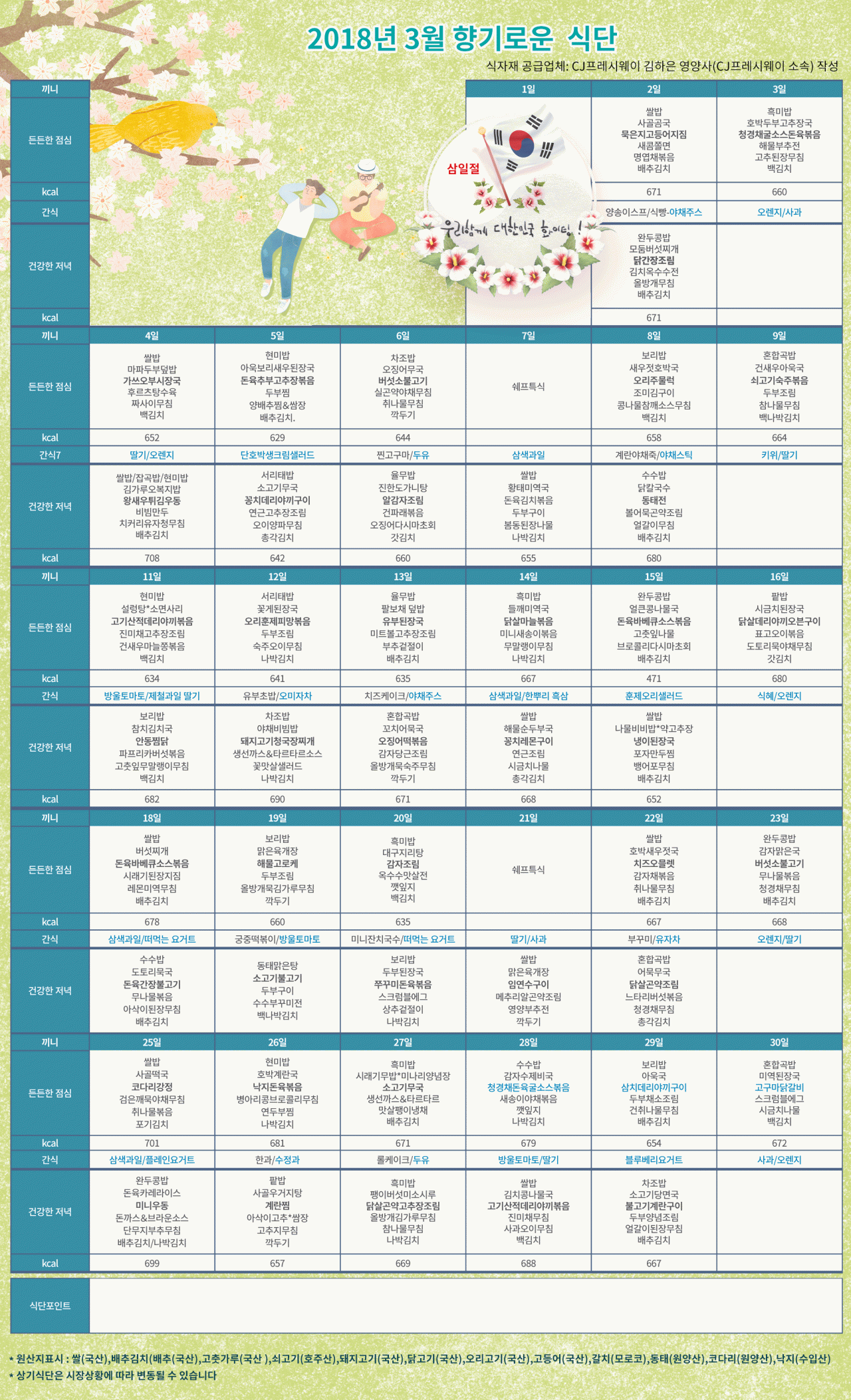 강동케어센터 [식단안내] 2018년 3월 향기로운 식단