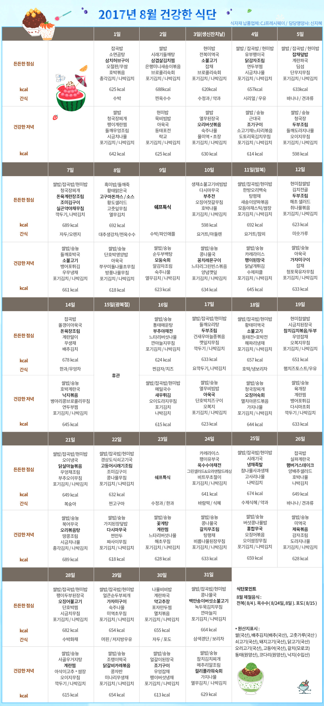강동케어센터 [ 식단안내 ] 2017.8월 건강한 식단표