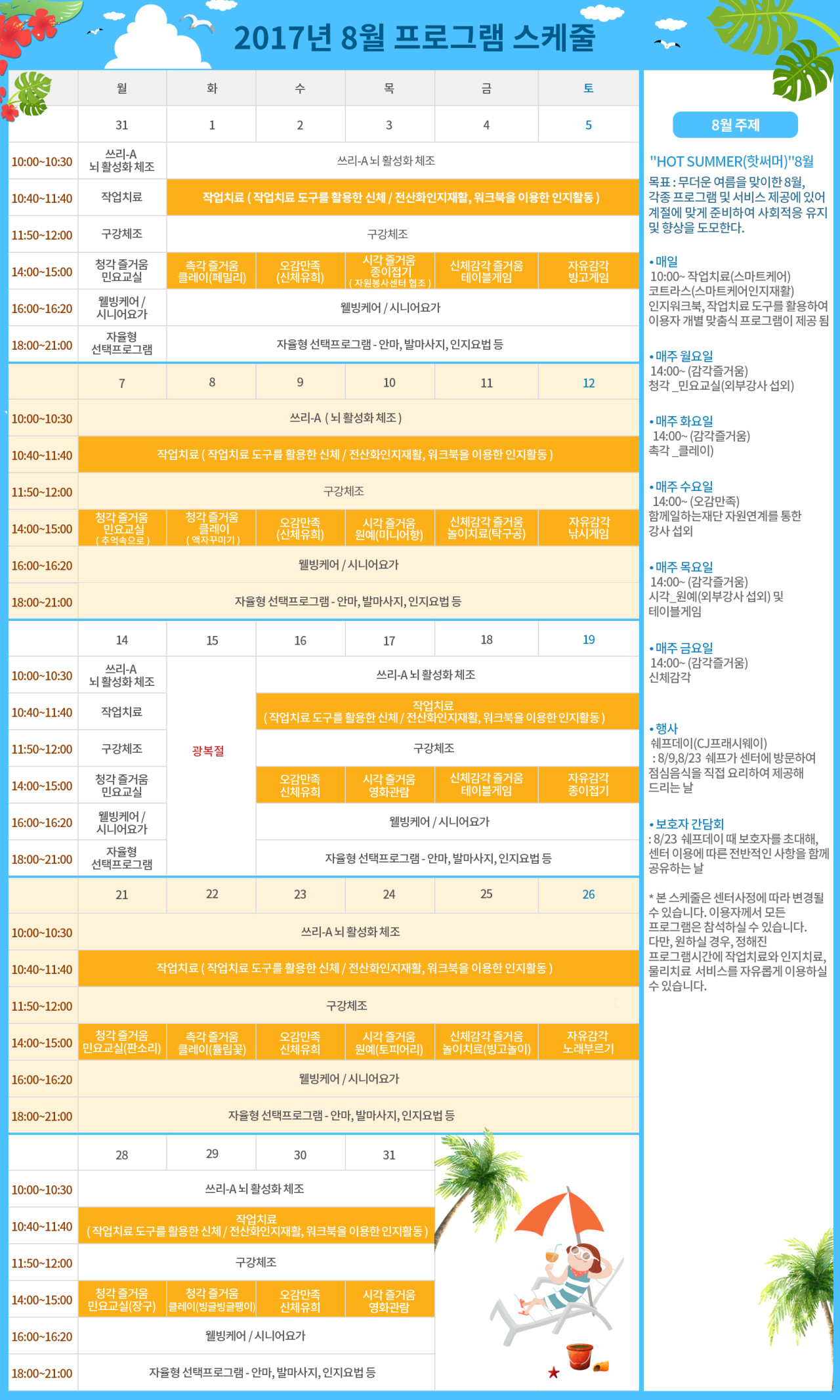 강동케어센터 2017.8월 강동케어센터 프로그램