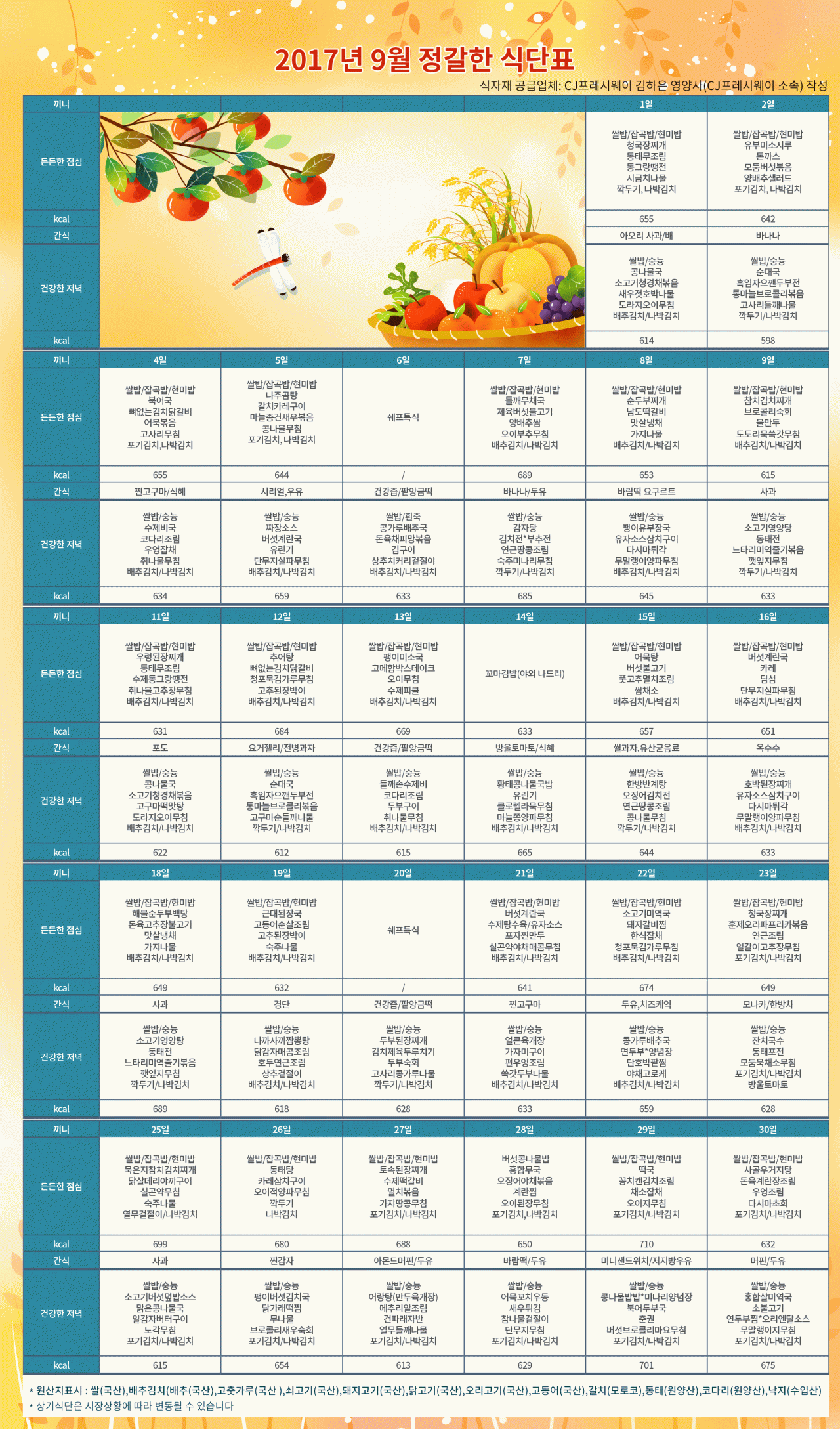 강동케어센터 [ 식단안내 ] 2017.9월 정갈한 식단표
