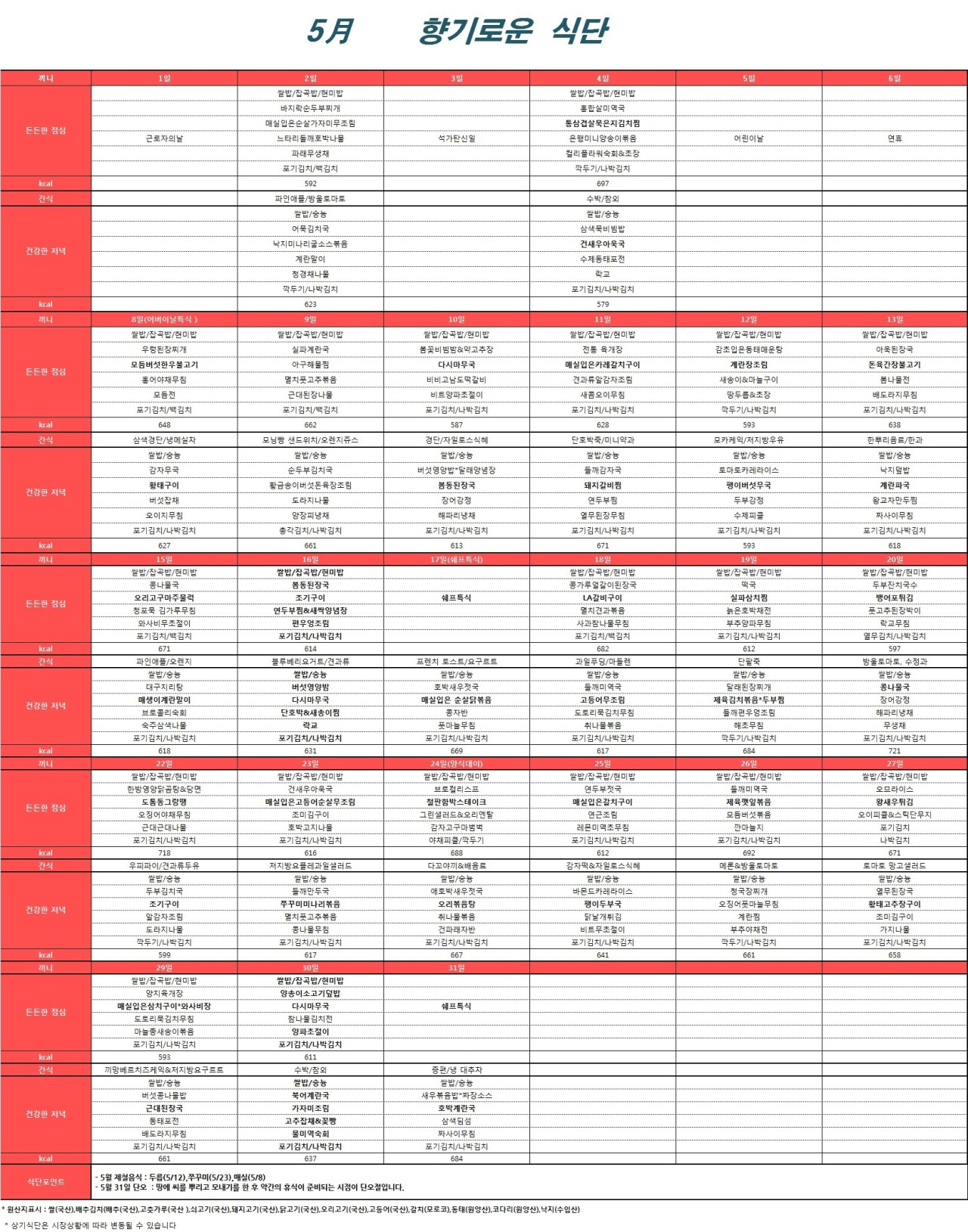 강동케어센터 [식단 안내]2017.5월 향기로운 식단 페이지 정보 작성자 KB 골든라이프 댓글 0건 조회 2,674회 작성일 17-05-04 15:50 목록 본문 KB골든라이프케어 강동케어센터 5월 식단 안내 드립니다. * 식자재 납품업체 : 씨제이프레시웨이 목록 이전글[프로그램 안내]2017.5월 강동케어센터 프로그램 17.05.04 다음글[기사] KB골든라이프케어, 강남대 학생들과 '사랑 나눔' 동행 17.04.11