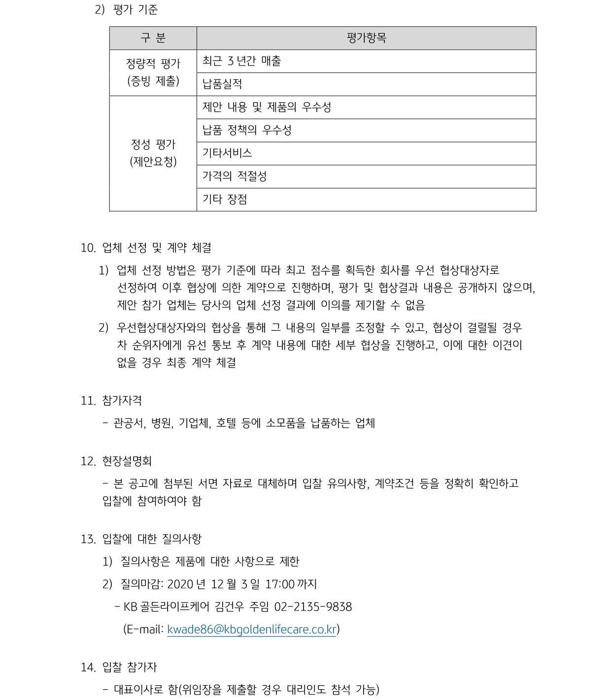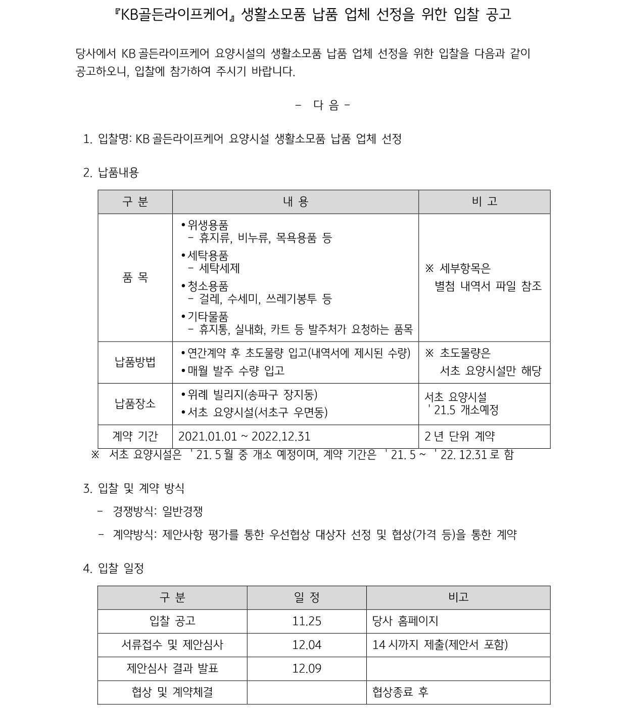 본사 [KB골든라이프케어] 생활소모품 납품업체 선정을 위한 입찰 공고