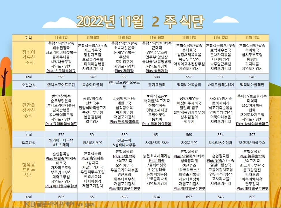 서초빌리지 [식단안내] 서초 빌리지 11월 2주차 식단표 페이지 정보 작성자 KB 골든라이프케어 댓글 0건 조회 2,401회 작성일 22-11-04 12:58 목록 본문 목록 이전글[식단안내] 위례 빌리지 11월 2주차 식단표 22.11.04 다음글[ 오늘의 식단 ] 2022년 11월 1일 화요일 22.11.02