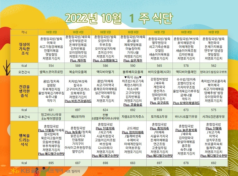 서초빌리지 [식단안내] 서초 빌리지 10월 1주차 식단표 페이지 정보 작성자 KB 골든라이프케어 댓글 0건 조회 2,526회 작성일 22-09-30 17:30 목록 본문 목록 이전글[오늘의식단] 2022년 10월 04일 화요일 22.10.04 다음글[식단 안내] 2022년 강동케어센터 10월 식단표 22.09.30