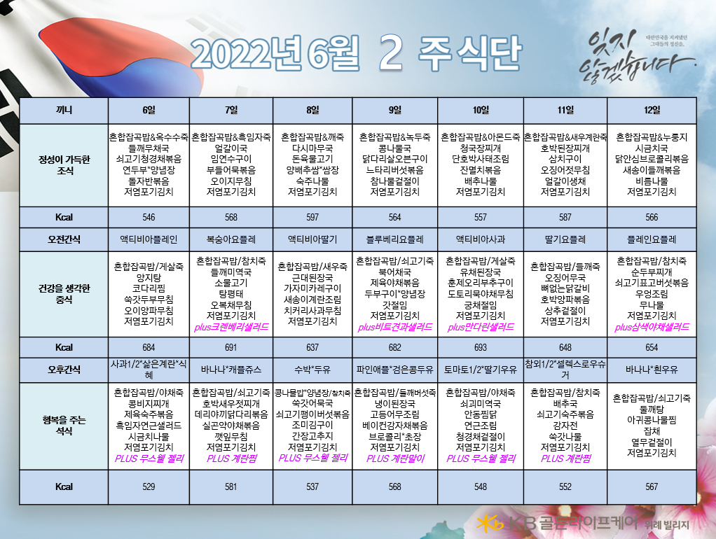 위례빌리지 [식단안내] 위례 빌리지 6월 2주차 식단표 페이지 정보 작성자 KB 골든라이프케어 댓글 0건 조회 2,654회 작성일 22-06-03 14:58 목록 본문 목록 이전글[식단안내] 위례 케어센터 6월 2주차 식단표 22.06.03 다음글[식단안내] 서초 빌리지 6월 2주차 식단표 22.06.03