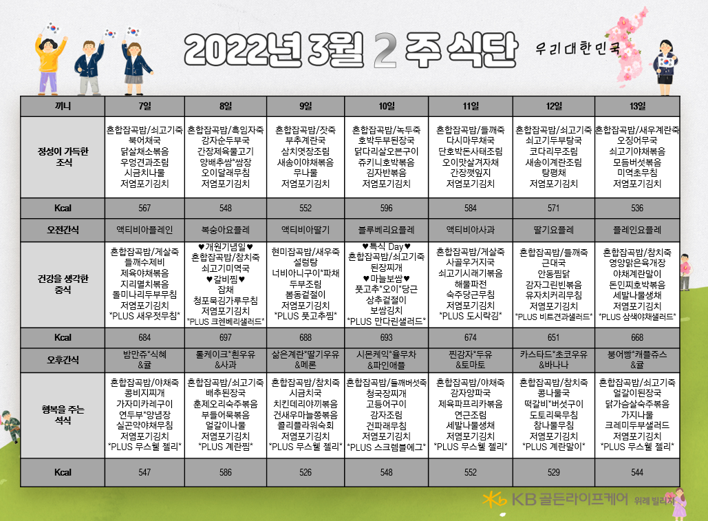 위례빌리지 [식단안내] 위례 빌리지 3월 2주차 식단표 페이지 정보 작성자 KB 골든라이프케어 댓글 0건 조회 2,893회 작성일 22-03-04 16:48 목록 본문 목록 이전글[식단안내] 위례 케어센터 3월 2주차 식단표 22.03.04 다음글[식단안내] 서초 빌리지 3월 2주차 식단표 22.03.04