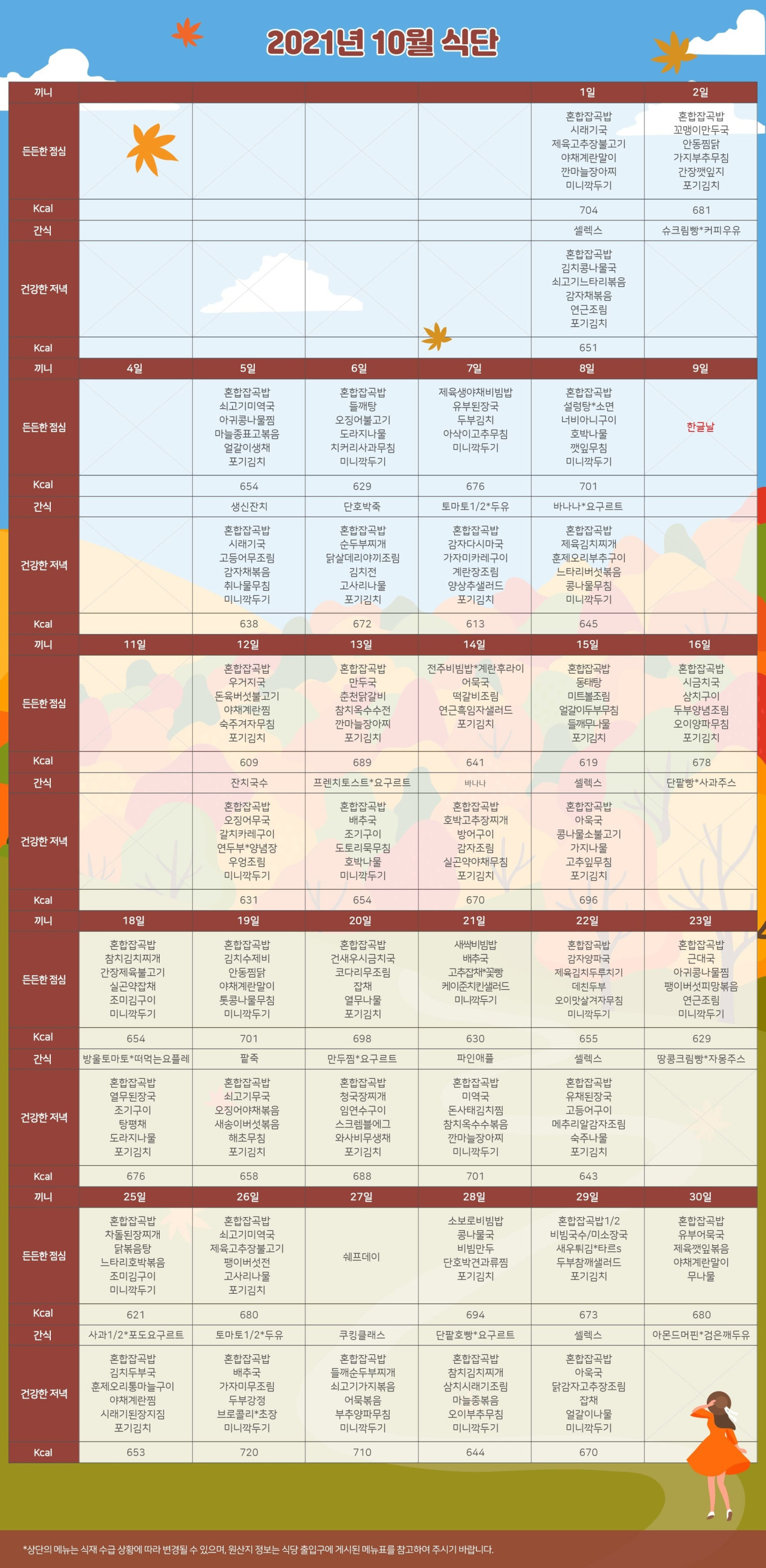 강동케어센터 [식단 안내] 2021년 강동케어센터 10월 식단표 페이지 정보 작성자 KB 골든라이프케어 댓글 0건 조회 2,973회 작성일 21-09-29 11:52 목록 본문 목록 이전글[프로그램 안내] 2021년 강동케어센터 10월 프로그램 21.09.29 다음글[오늘의식단] 2021년 9월 28일 화요일 21.09.28