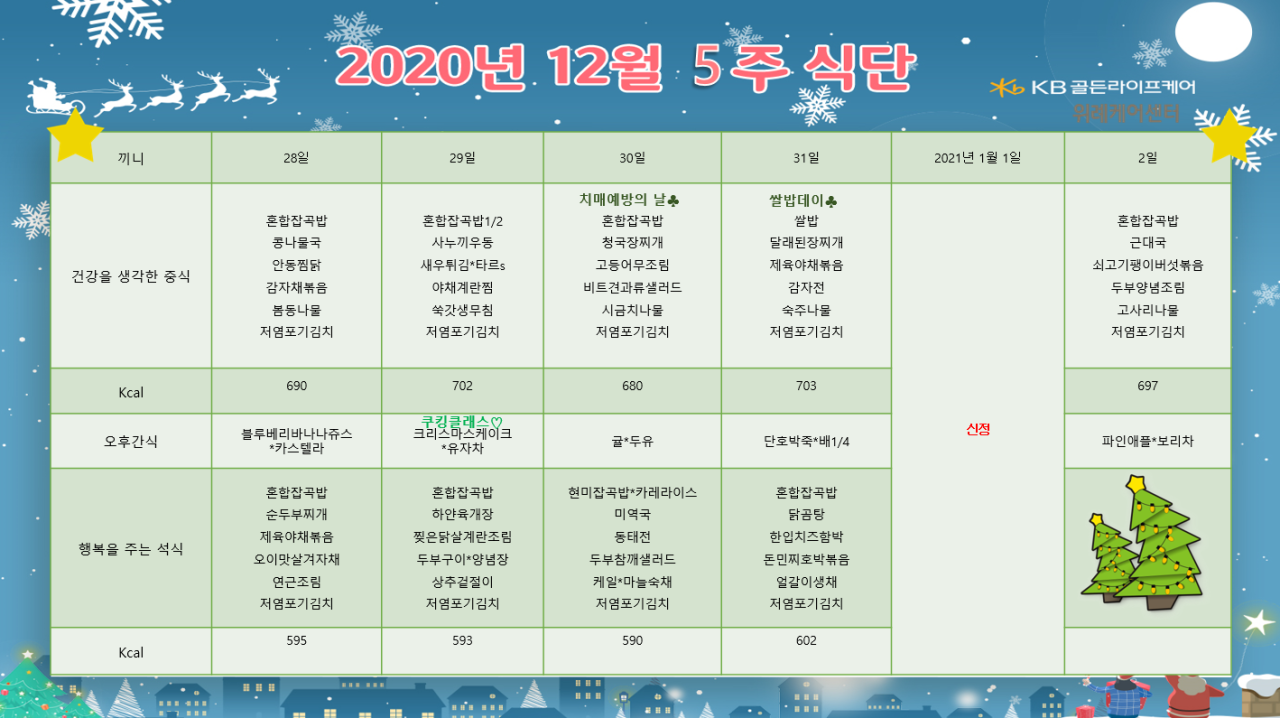 위례케어센터 [식단안내] 위례 케어센터 12월 5주차 식단표 페이지 정보 작성자 KB 골든라이프케어 댓글 0건 조회 3,711회 작성일 20-12-24 14:35 목록 본문 목록 이전글[식단 안내] 2021년 강동케어센터 1월 식단표 20.12.30 다음글[식단안내] 위례 빌리지 12월 5주차 식단표 20.12.24