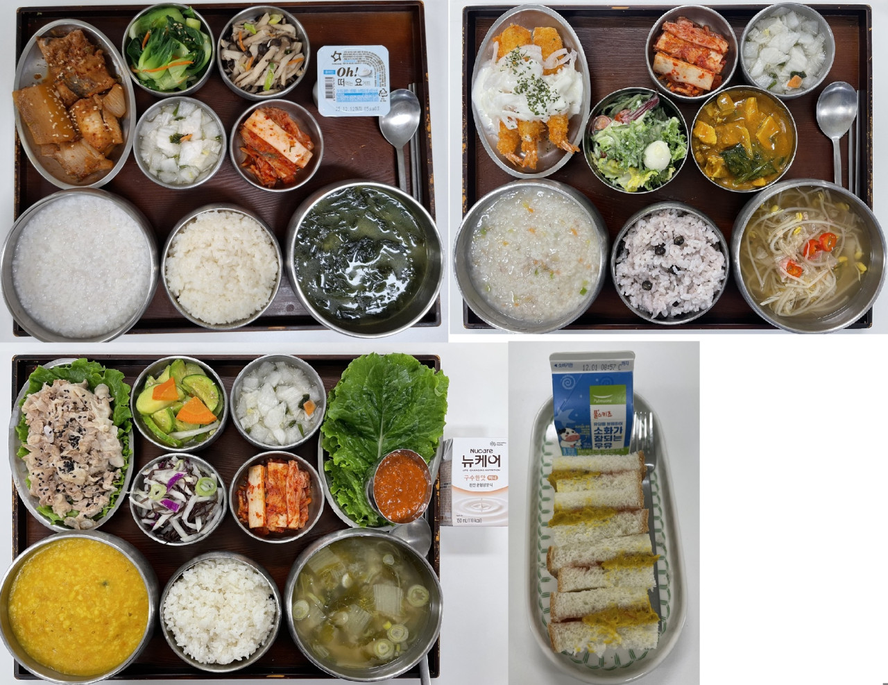 은평빌리지 [하루의식단] 2025년 11월 26일 페이지 정보 작성자 최고관리자 댓글 0건 조회 1,025회 작성일 25-11-29 16:03 목록 본문 ■ 조식 : 잡곡밥/흰죽,들기름미역국,코다리살조림,만가닥버섯볶음,청경채나물무침,포기김치/나박김치,요플레■ 중식 : 약콩밥/전복야채죽,전주식콩나물국,버터치킨카레,왕새우튀김/타르S,봄동시저샐러드,포기김치/나박김치■ 석식 : 잡곡밥/단호박죽,시래기들깨된장국,대패삼겹살구이/상추,새우젓호박볶음,꼬시래기무채무침,뉴케어구수한맛,포기김치/나박김치◆ 오후간식 : 우유/수제샌드위치 (다진찬:단호박라떼) 목록 이전글[식단안내] 2025년 12월 1째주 식단표 25.11.29 다음글[오늘의식단] 2025년 11월 27일 중식 25.11.29