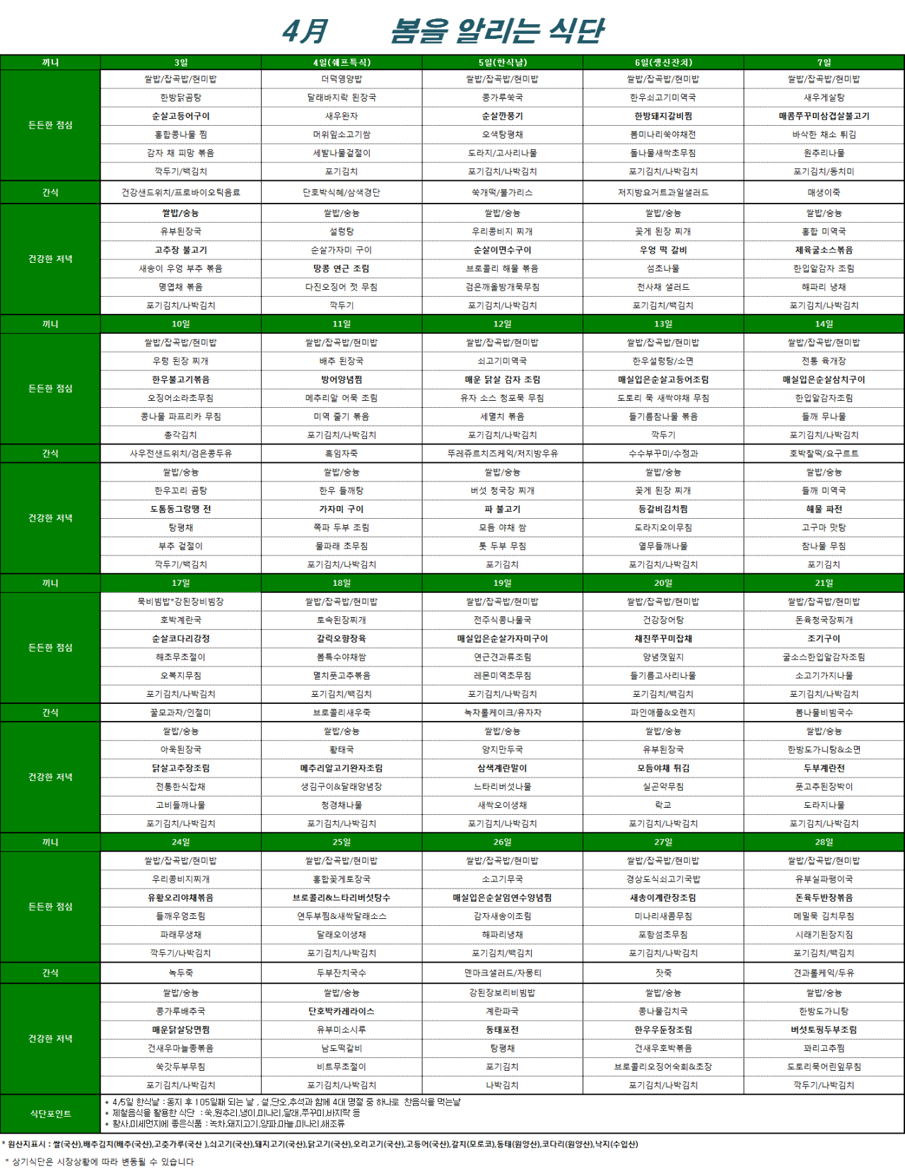 강동케어센터 [식단 안내] 2017.4월 봄을 알리는 식단 페이지 정보 작성자 KB 골든라이프 댓글 0건 조회 3,985회 작성일 17-04-03 10:58 목록 본문 KB골든라이프케어 강동케어센터 4월 식단 안내 해 드립니다. 목록 이전글 22.04.06
