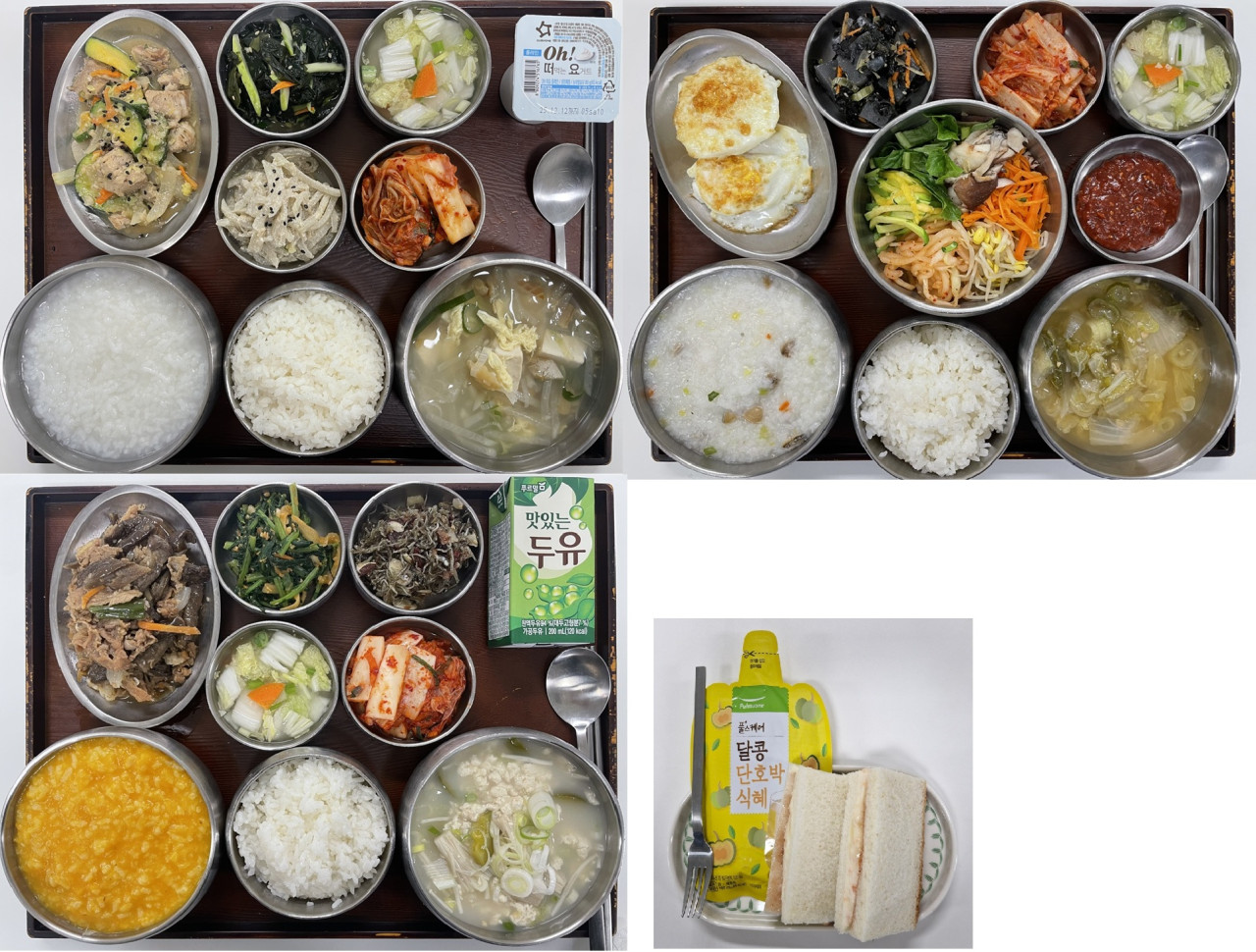 은평빌리지 [하루의식단] 2025년 11월 19일 페이지 정보 작성자 최고관리자 댓글 0건 조회 993회 작성일 25-11-22 00:20 목록 본문 ◆ 조식 : 잡곡밥/흰죽, 북어계란국, 돈육호박조림, 들깨무채나물볶음, 미역유자청무침, 포기김치/나박김치, 요플레◆ 중식 : 오색비빔밥/전복야채죽, 콩가루배추국, 계란후라이/약고추장, 오색나물, 올방개묵김가루무침, 포기김치/나박김치◆ 석식 : 잡곡밥/단호박죽, 몽글순두부백탕, 건가지소불고기, 지리멸치아몬드볶음, 열무쌈장나물, 포기김치/나박김치, 맛있는 두유◇ 오후간식 : 단호박식혜/수제샌드위치 (다진찬: 생과일주스) 목록 이전글[식단안내] 2025년 11월 4째주 25.11.22 다음글[오늘의식단] 2025년 11월 21일 중식 25.11.22