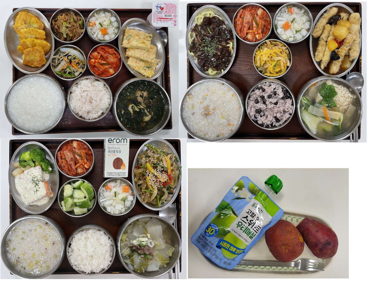은평빌리지 [하루의식단] 2025년 10월 17일 페이지 정보 작성자 최고관리자 댓글 0건 조회 1,449회 작성일 25-10-18 09:38 목록 본문 조식 : 잡곡밥/흰죽, 소고기표고미역국,명란계란찜,고구마순나물볶음,청포묵숙주무침,포기김치/나박김치,요플레 중식 : 약콩밥/전복야채죽, 해물누룽지탕, 유니짜장면, 허브탕수육/소스, 짜사이양파채무침, 포기김치/나박김치석식 : 잡곡밥/버섯야채죽, 소고기배추국,연어구이/화이트갈릭S, 청양풍넙적당면잡채, 오이탕탕이, 포기김치/나박김치, 두유오후간식 : 매실음료/찐고구마 (다진식:고구마라떼) 목록 이전글<하루의식단> 2025년 10월 15일 중식 25.10.18 다음글서초빌리지 2025년 10월 4주차 식단안내 25.10.17
