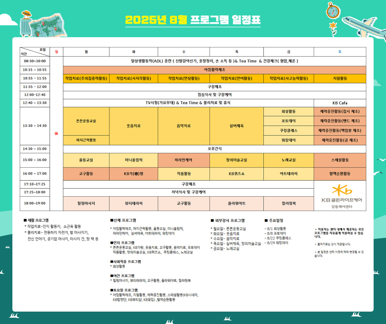 강동케어센터 [프로그램 안내] 강동케어센터 8월 프로그램 일정표 페이지 정보 작성자 최고관리자 댓글 0건 조회 2,607회 작성일 25-08-01 08:56 목록 본문 목록 이전글서초 빌리지 2025년 8월 1주차 식단표 25.08.04 다음글[식단안내] 2025년 8월 1주차 식단표 25.07.31
