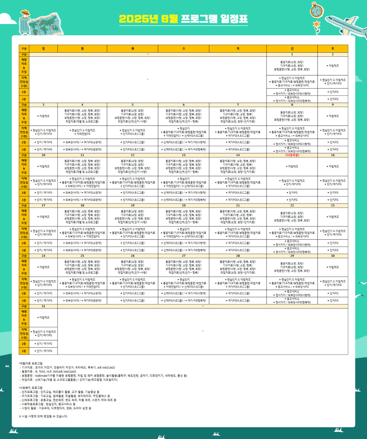 서초빌리지 [프로그램 안내] 2025년 서초 빌리지 8월 프로그램 일정표 페이지 정보 작성자 최고관리자 댓글 0건 조회 2,957회 작성일 25-07-27 18:54 목록 본문 목록 이전글서초 빌리지 2025년 7월 5주차 식단표 25.07.28 다음글[식단안내] 2025년 7월 5주차 식단표 25.07.24