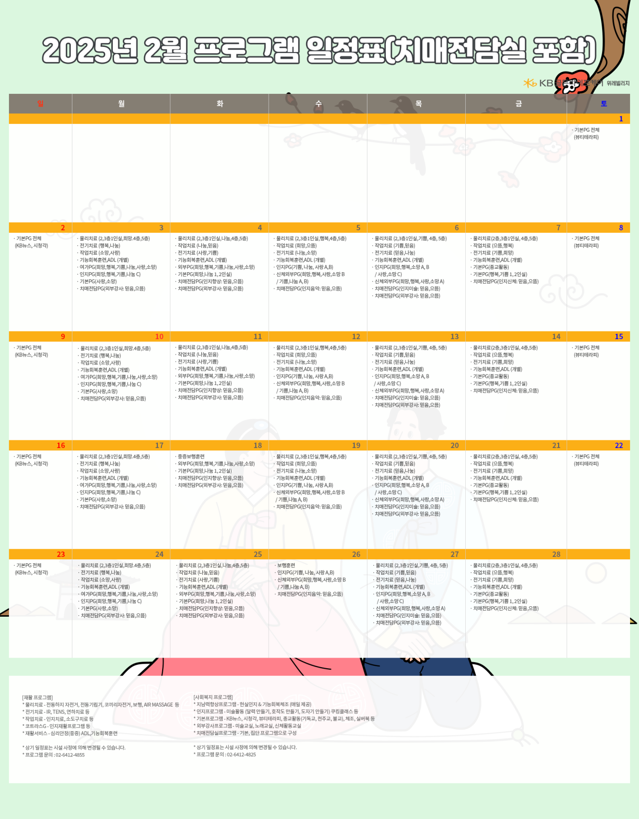 위례빌리지 [프로그램 안내] 2025년 위례빌리지 2월 프로그램 일정표 페이지 정보 작성자 최고관리자 댓글 0건 조회 3,731회 작성일 25-01-31 11:53 목록 본문 목록 이전글[프로그램 안내] 2025년 강동케어센터 2월 프로그램 일정표 25.01.31 다음글[오늘의 식단] 2025년 01월 24일 중식 & 간식 25.01.24