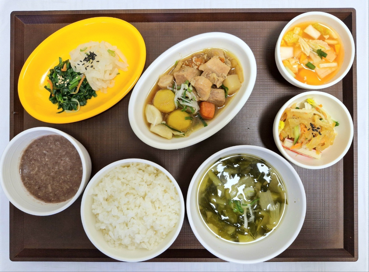 서초빌리지 [오늘의 식단] 2024년 12월 20일 중식 페이지 정보 작성자 KB 골든라이프케어 댓글 0건 조회 2,629회 작성일 24-12-20 12:04 목록 본문 안녕하세요. 12.20 중식제공 식단입니다. 동지팥죽, 현미잡곡밥 / 근대된장국 / 돈육통밤마늘장조림 / 해파리맛살냉채 / 이색나물 (무나물&시금치) / 나박물김치 **KB골든라이프케어 서초빌리지점은 현대그린푸드에서 운영하는 시니어 대상 급식사업장 입니다.** 목록 이전글[식단안내] 위례 케어센터 12월 4주차 식단표 24.12.20 다음글[오늘의 식단] 2024년 12월 20일 석식 24.12.20