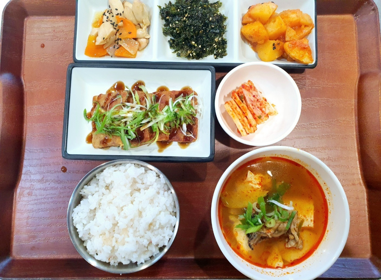 강동케어센터 [오늘의 식단] 2024년 10월 08일 중식 페이지 정보 작성자 KB 골든라이프케어 댓글 0건 조회 2,433회 작성일 24-10-08 11:55 목록 본문 안녕하세요. 10.08 중식 제공식단입니다. 굴순두부찌개 / 너비아니&파채겉절이 / 감자조림 / 애기새송이볶음 / 건파래볶음 / 포기김치 / 잡곡밥 **KB골든라이프케어 강동점은 현대그린푸드에서 운영하는 시니어 대상 급식사업장 입니다.** 목록 이전글[오늘의 식단] 10월 8일 중식 24.10.08 다음글[하루의 식단] 2024년 10월 7일 24.10.07