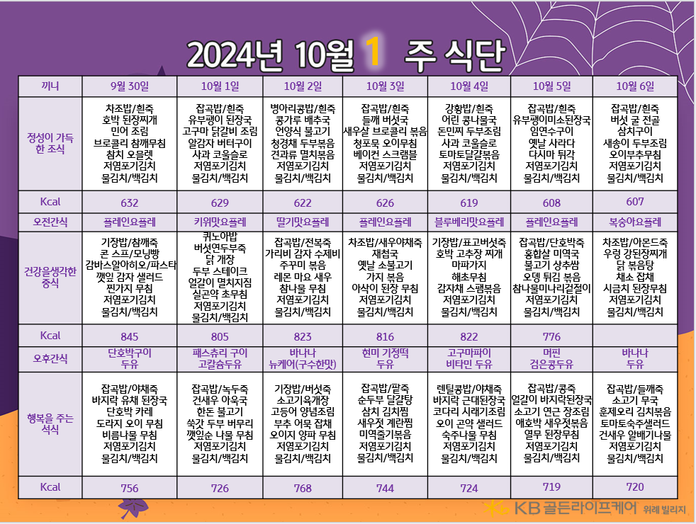 위례빌리지 [식단안내] 위례 빌리지 10월 1주차 식단표 페이지 정보 작성자 KB 골든라이프케어 댓글 0건 조회 2,416회 작성일 24-09-27 18:07 목록 본문 목록 이전글[식단안내] 서초 빌리지 10월 1주차 식단표 24.09.27 다음글[식단안내] 위례 케어센터 10월 1주차 식단표 24.09.27
