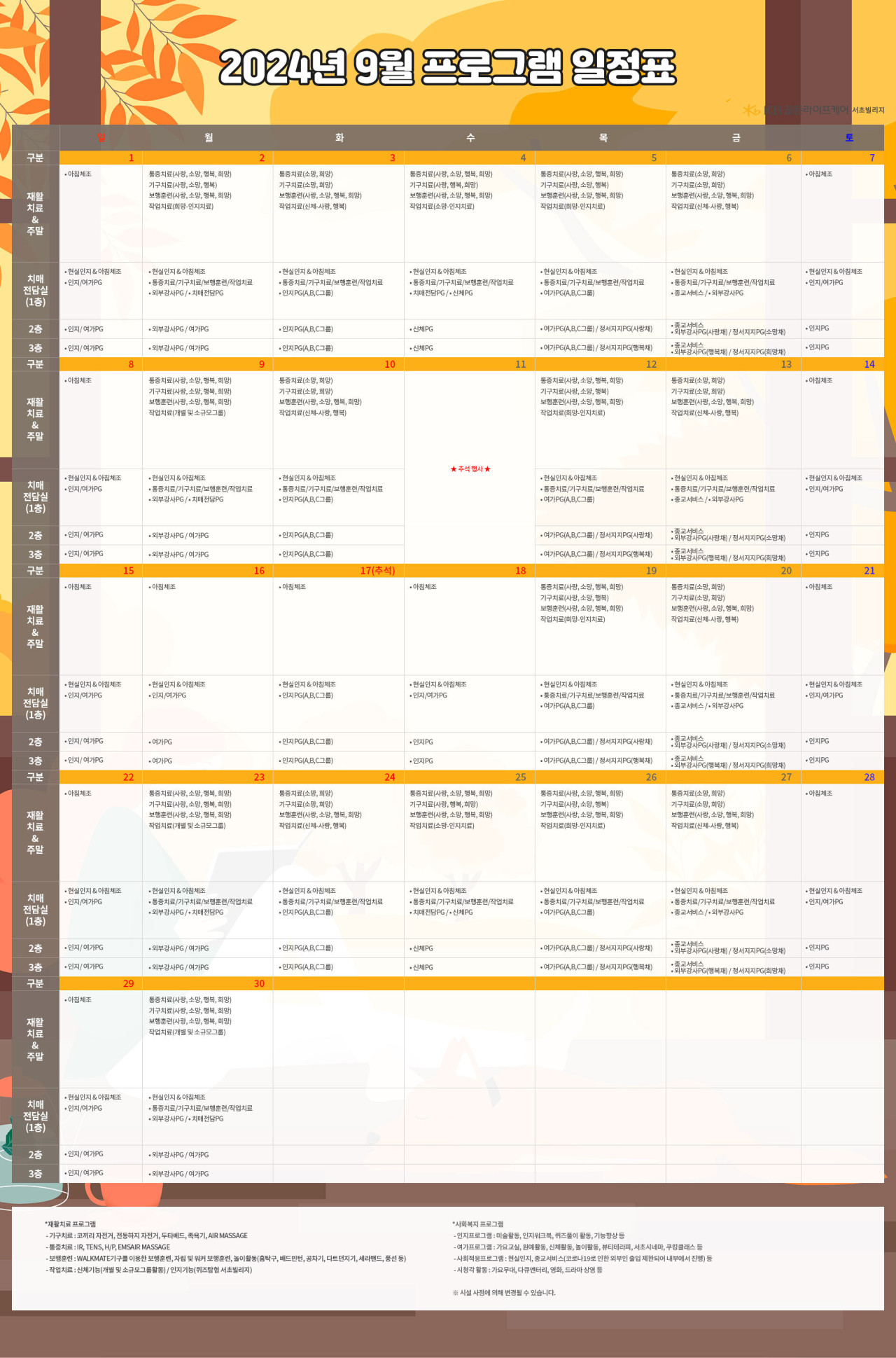 서초빌리지 [프로그램안내] 2024년 서초 빌리지 9월 프로그램 일정표 페이지 정보 작성자 KB 골든라이프케어 댓글 0건 조회 3,793회 작성일 24-08-27 17:37 목록 본문 목록 이전글[오늘의 식단] 2024년 08월 28일 24.08.28 다음글[오늘의 식단] 2024년 08월 27일 중식 24.08.27
