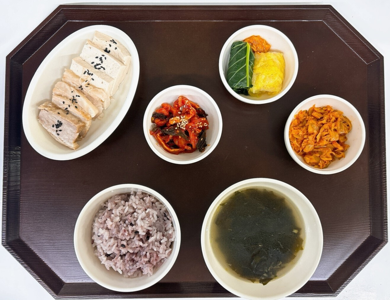 서초빌리지 [오늘의 식단] 2024년 07월 30일 중식 페이지 정보 작성자 KB 골든라이프케어 댓글 0건 조회 2,374회 작성일 24-07-30 11:22 목록 본문 안녕하세요. 07월30일 중식제공식단입니다. 수육&온두부찜 / 케일,알배추숙쌈 & 쌈장 / 고추잎무말랭무침 / 볶음김치 / 미역국 / 잡곡밥 **KB골든라이프케어 서초빌리지점은 현대그린푸드에서 운영하는 시니어 대상 급식사업장 입니다.** 목록 이전글[프로그램 안내] 2024년 서초 빌리지 8월 프로그램 일정표 24.07.30 다음글[프로그램 안내] 2024년 위례케어센터 8월 프로그램 일정표 24.07.29