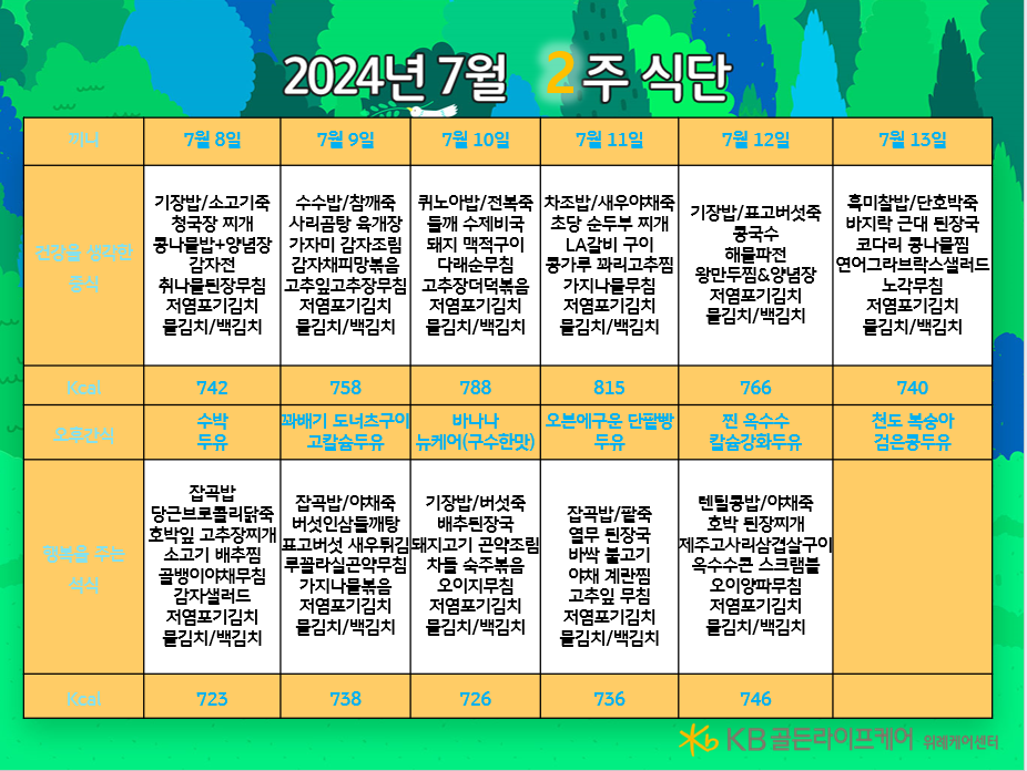 위례케어센터 [식단안내] 위례 케어센터 7월 2주차 식단표 페이지 정보 작성자 KB 골든라이프케어 댓글 0건 조회 2,446회 작성일 24-07-04 14:51 목록 본문 목록 이전글[식단안내] 위례 빌리지 7월 2주차 식단표 24.07.04 다음글[오늘의 식단] 2024년 7월 4일 중식 24.07.04