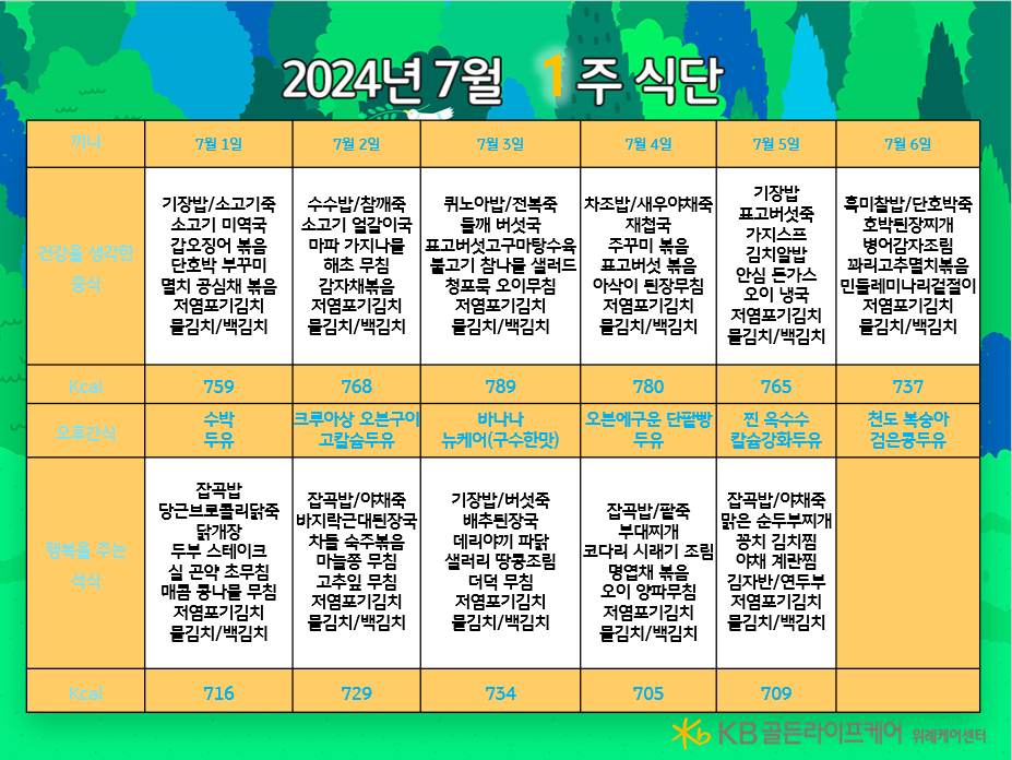 위례케어센터 [식단안내] 위례 케어센터 7월 1주차 식단표 페이지 정보 작성자 KB 골든라이프케어 댓글 0건 조회 2,435회 작성일 24-06-27 11:02 목록 본문 목록 이전글[식단안내] 위례 빌리지 7월 1주차 식단표 24.06.27 다음글[하루의 식단] 2024년 6월 26일 24.06.26