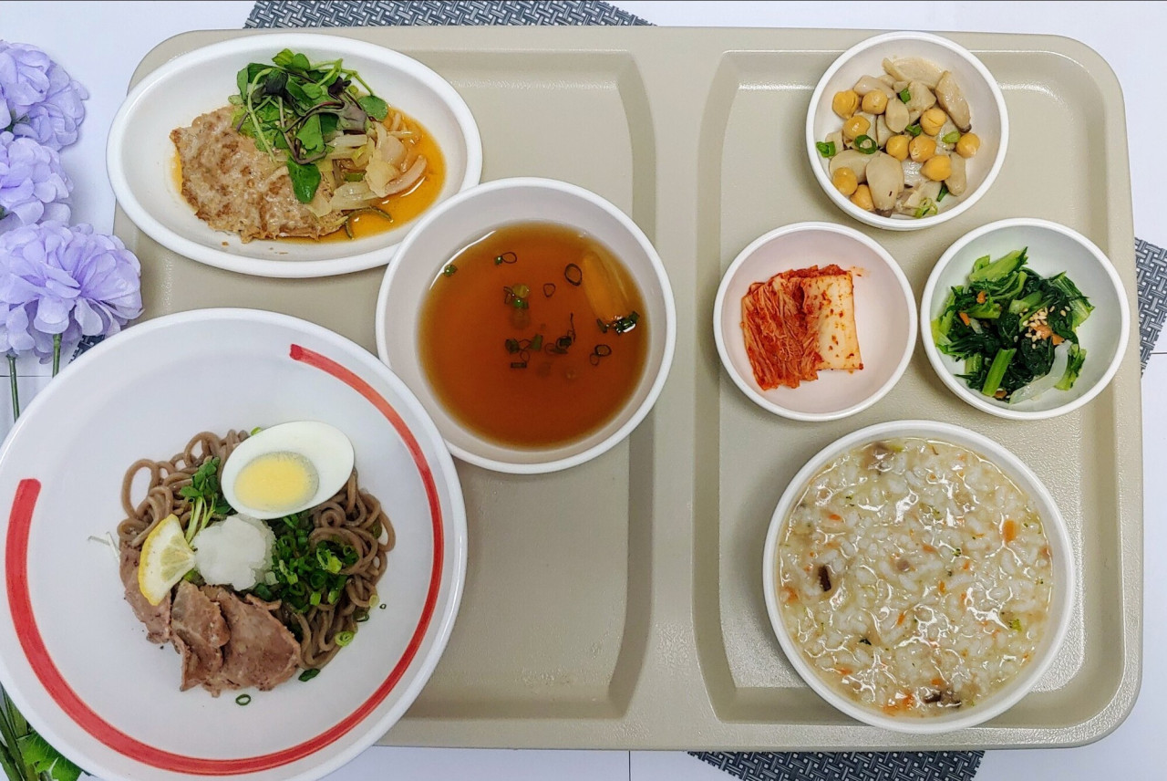 서초빌리지 [오늘의 식단] 2024년 06월 05일 중식 페이지 정보 작성자 KB 골든라이프케어 댓글 0건 조회 2,134회 작성일 24-06-05 11:51 목록 본문 안녕하세요 06.05 중식 제공식단입니다. [면DAY] 소고기냉메밀국수/ 수제바싹불고기/ 새송이병아리콩조림/ 얼갈이나물/ 저염포기김치/ 죽(그리팅 소고기버섯죽) **KB골든라이프케어 서초빌리지점은 현대그린푸드에서 운영하는 시니어 대상 급식사업장 입니다.** 목록 이전글[하루의 식단] 2024년 6월 5일 24.06.06 다음글[오늘의 식단] 2024년 6월 05일 중식 24.06.05