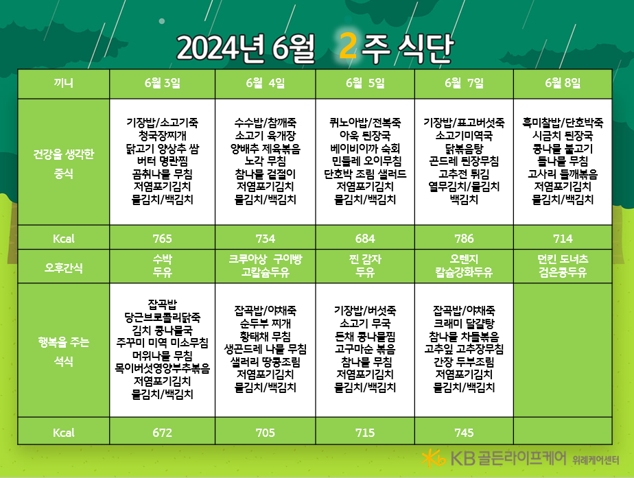 위례케어센터 [식단안내] 위례 케어센터 6월 2주차 식단표 페이지 정보 작성자 KB 골든라이프케어 댓글 0건 조회 2,315회 작성일 24-05-30 10:51 목록 본문 목록 이전글[식단안내] 위례 빌리지 6월 2주차 식단표 24.05.30 다음글[프로그램 안내] 2024년 강동케어센터 6월 프로그램 일정표 24.05.30