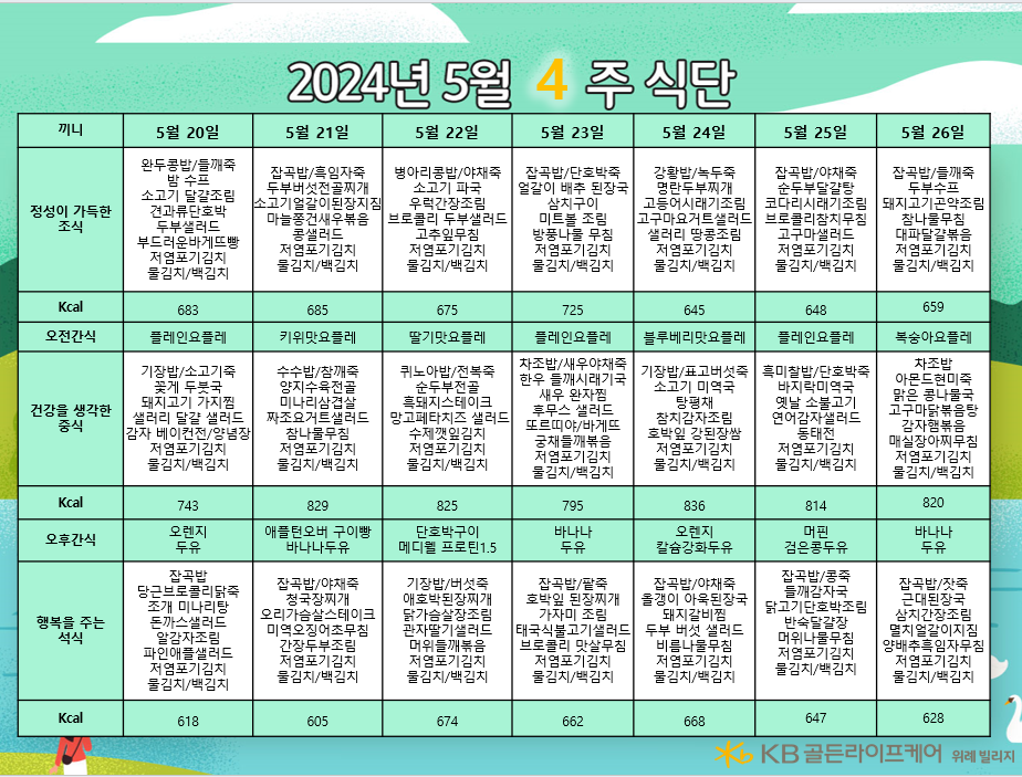 위례빌리지 [식단안내] 위례 빌리지 5월 4주차 식단표 페이지 정보 작성자 KB 골든라이프케어 댓글 0건 조회 2,419회 작성일 24-05-17 17:21 목록 본문 목록 이전글[식단안내] 위례 케어센터 5월 4주차 식단표 24.05.17 다음글[하루의 식단] 2024년 5월 17일 24.05.17
