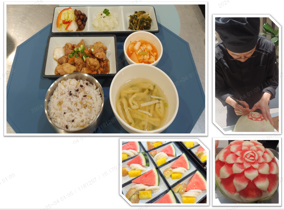 * 금일 센터 內 어버이행사 진행에 따라, 현대그린푸드 조리실장님께서 수박카빙 깜짝이벤트 준비하여