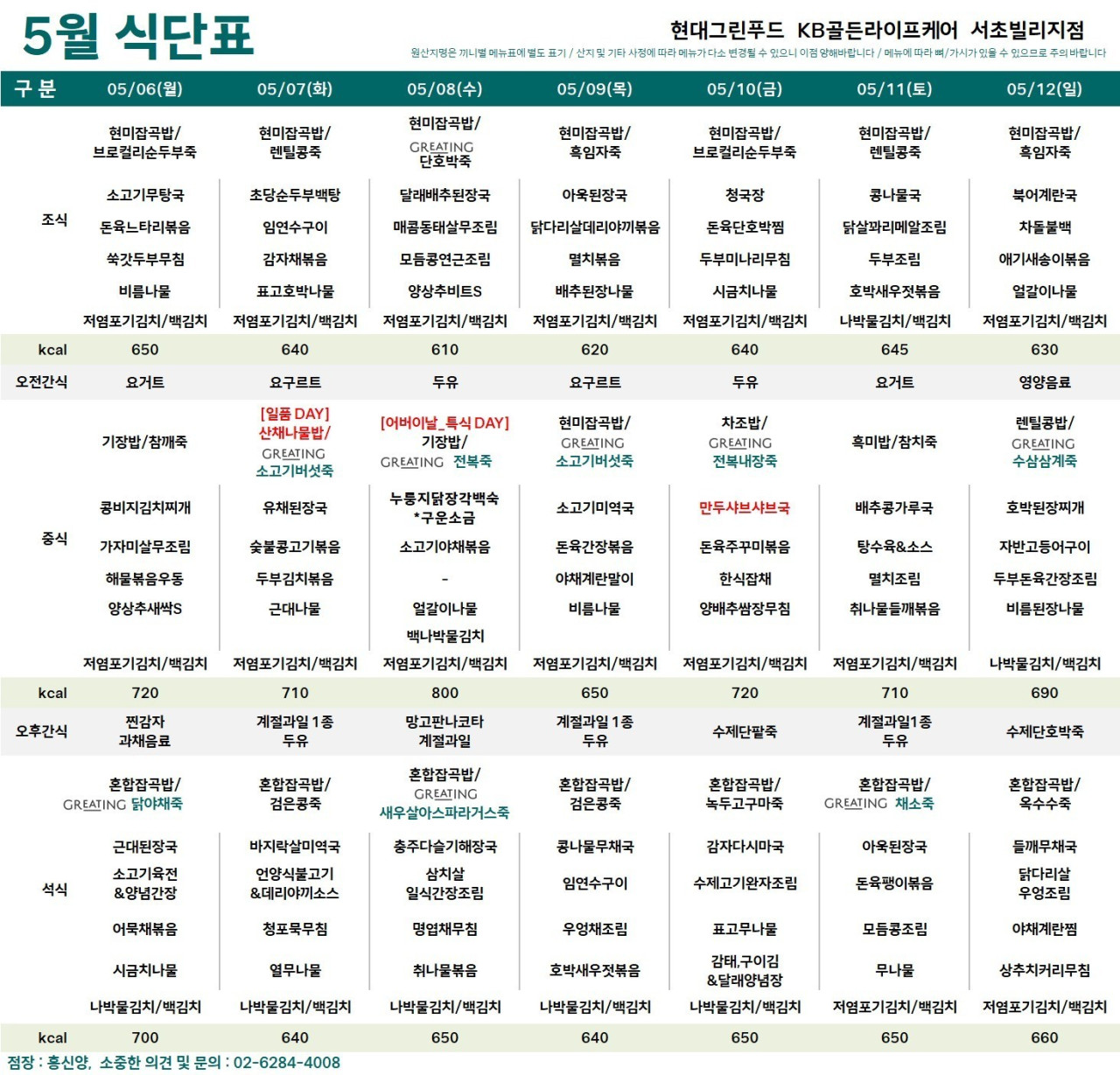 서초빌리지 [식단안내] 서초 빌리지 5월 2주차 식단표 페이지 정보 작성자 KB 골든라이프케어 댓글 0건 조회 2,253회 작성일 24-05-05 22:14 목록 본문 목록 이전글[오늘의 식단] 2024년 5월 8일 중식 24.05.08 다음글[오늘의 식단] 2024년 5월 3일 중식 24.05.03