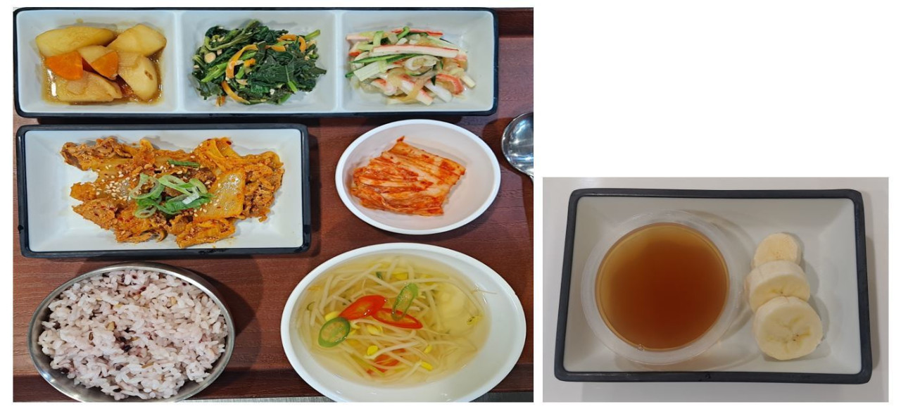 아래 식단은 일반식사이며, 어르신들이 가정집에서 드시는, 친근한 메뉴로 식단을 구성해 보았습니다.