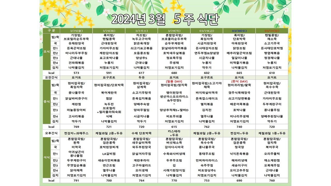 서초빌리지 [식단안내] 서초 빌리지 3월 3주차 식단표 페이지 정보 작성자 KB 골든라이프케어 댓글 0건 조회 2,271회 작성일 24-03-25 08:59 목록 본문 목록 이전글[프로그램 안내] 2024년 서초 빌리지 4월 프로그램 일정표 24.03.25 다음글[식단안내] 위례 케어센터 3월 5주차 식단표 24.03.22
