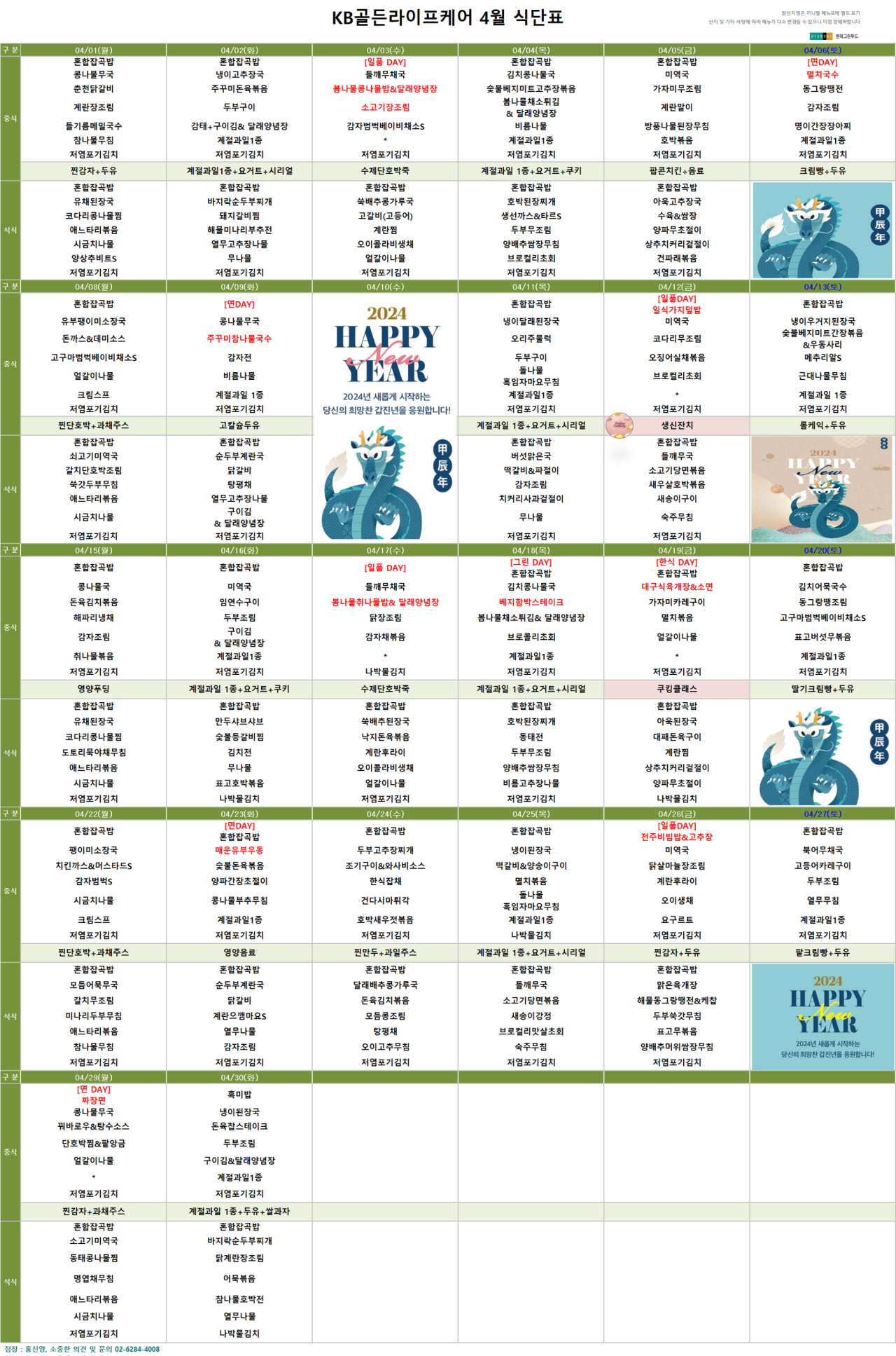 강동케어센터 [식단안내] 2024년 강동케어센터 4월 식단표 페이지 정보 작성자 KB 골든라이프케어 댓글 0건 조회 2,936회 작성일 24-03-28 15:30 목록 본문 목록 이전글[프로그램 안내] 2024년 강동케어센터 4월 프로그램 일정표 24.03.28 다음글[프로그램 안내] 2024년 위례 빌리지 4월 프로그램 일정표 24.03.28