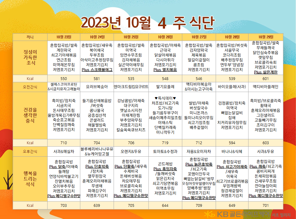 서초빌리지 [식단안내] 서초 빌리지 10월 4주차 식단표 페이지 정보 작성자 KB 골든라이프케어 댓글 0건 조회 2,331회 작성일 23-10-22 14:52 목록 본문 목록 이전글[ 오늘의 식단 ] 2023년 10월 26일 목요일 23.10.26 다음글[식단안내] 위례 케어센터 10월 4주차 식단표 23.10.21