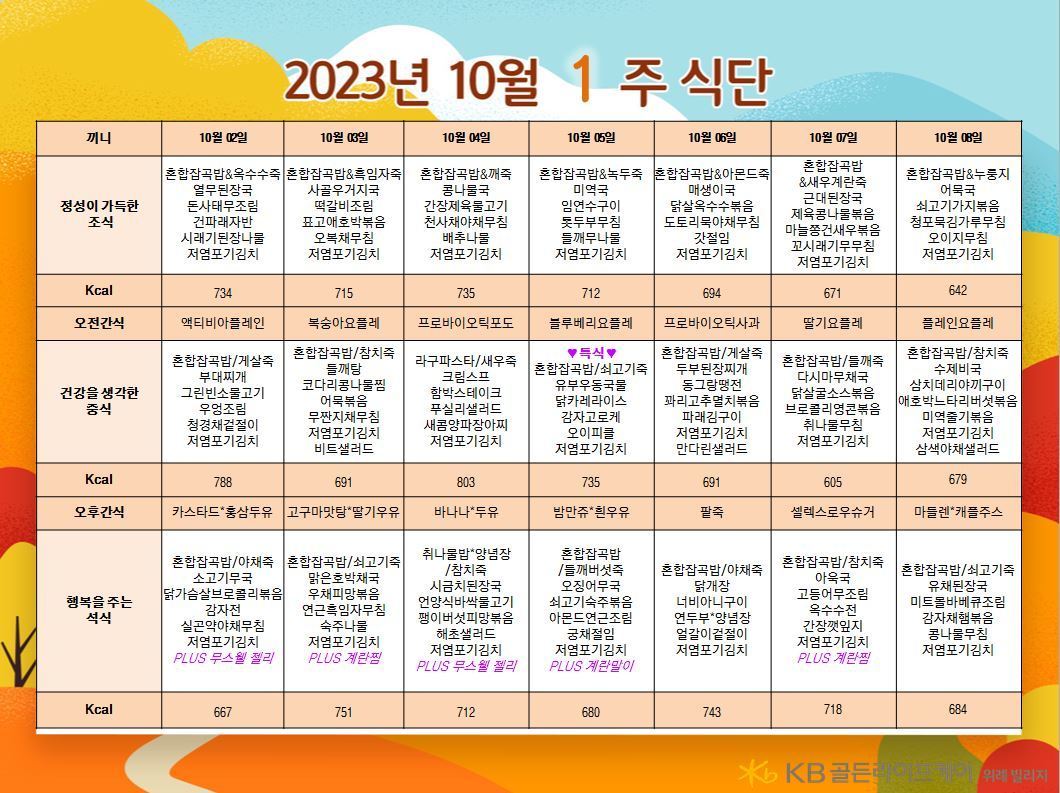 위례빌리지 [식단안내] 위례 빌리지 10월 1주차 식단표 페이지 정보 작성자 KB 골든라이프케어 댓글 0건 조회 2,486회 작성일 23-09-27 13:10 목록 본문 목록 이전글[식단안내] 서초 빌리지 10월 1주차 식단표 23.09.29 다음글[식단안내] 위례 케어센터 10월 1주차 식단표 23.09.27