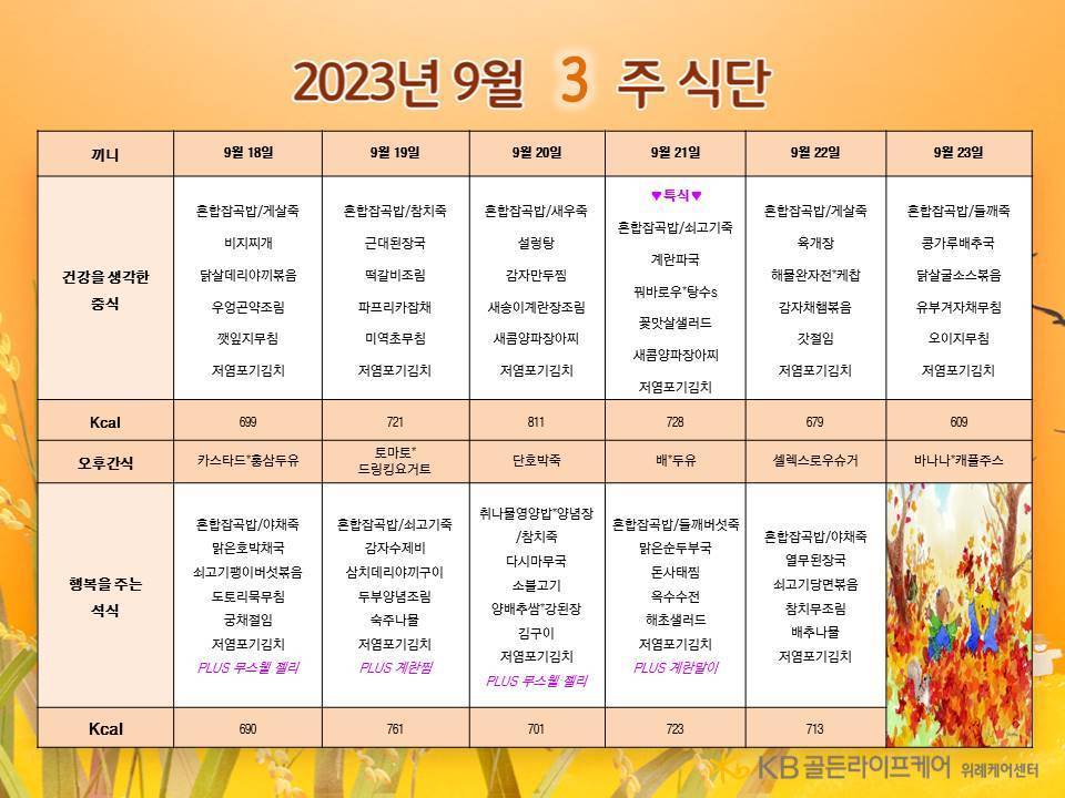 위례케어센터 [식단안내] 위례 케어센터 9월 3주차 식단표 페이지 정보 작성자 KB 골든라이프케어 댓글 0건 조회 2,382회 작성일 23-09-14 15:39 목록 본문 목록 이전글[식단안내] 서초 빌리지 9월 3주차 식단표 23.09.15 다음글[식단안내] 위례 빌리지 9월 3주차 식단표 23.09.14