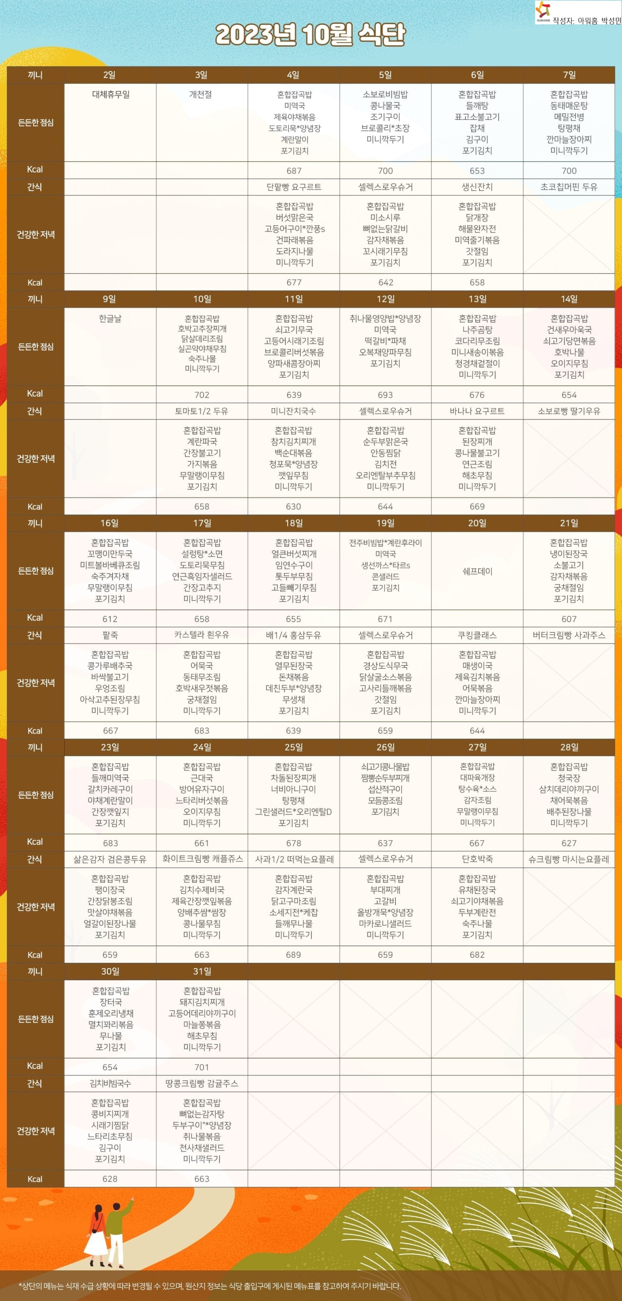 강동케어센터 [식단안내] 2023년 강동케어센터 10월 식단표 페이지 정보 작성자 KB 골든라이프케어 댓글 0건 조회 3,357회 작성일 23-09-22 17:26 목록 본문 목록 이전글[식단안내] 서초 빌리지 9월 4주차 식단표 23.09.24 다음글[프로그램 안내] 2023년 강동케어센터 10월 프로그램 일정표 23.09.22