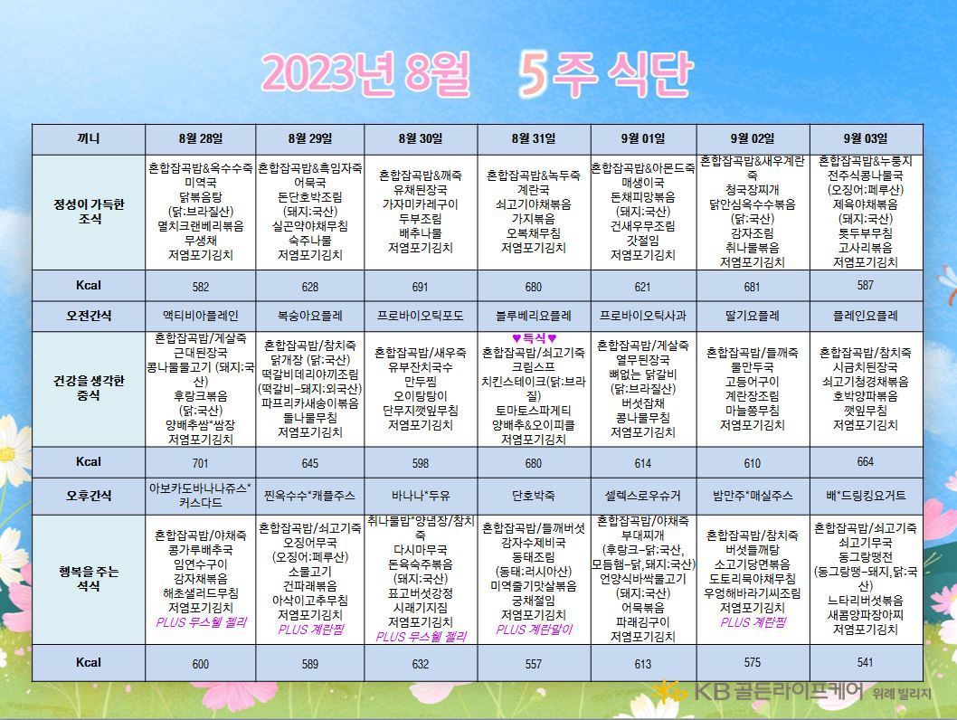위례빌리지 [식단안내] 위례 빌리지 8월 5주차 식단표 페이지 정보 작성자 KB 골든라이프케어 댓글 0건 조회 2,254회 작성일 23-08-25 10:26 목록 본문 목록 이전글[식단안내] 위례 케어센터 8월 5주차 식단 23.08.25 다음글[식단안내] 위례 빌리지 8월 4주차 식단표 23.08.25