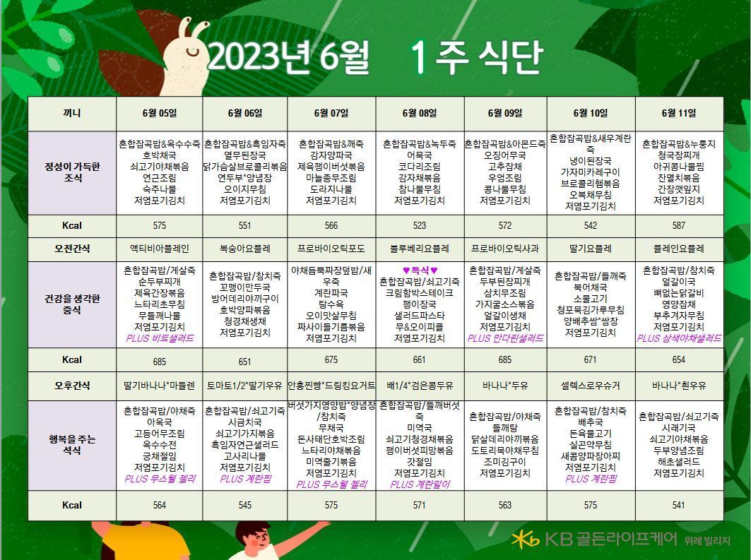 위례빌리지 [식단안내] 위례 빌리지 6월 1주차 식단표 페이지 정보 작성자 KB 골든라이프케어 댓글 0건 조회 2,361회 작성일 23-06-02 09:22 목록 본문 목록 이전글[식단안내] 위례 케어센터 6월 1주차 식단표 23.06.02 다음글[프로그램안내] 2023년 서초 빌리지 6월 프로그램 일정표 23.06.01