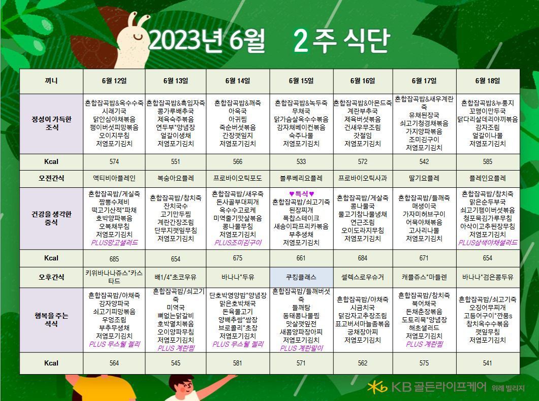 위례빌리지 [식단안내] 위례 빌리지 6월 2주차 식단표 페이지 정보 작성자 KB 골든라이프케어 댓글 0건 조회 2,327회 작성일 23-06-10 07:36 목록 본문 목록 이전글[식단안내] 위례 케어센터 6월 2주차 식단표 23.06.10 다음글[식단안내] 서초 빌리지 6월 2주차 식단표 23.06.09